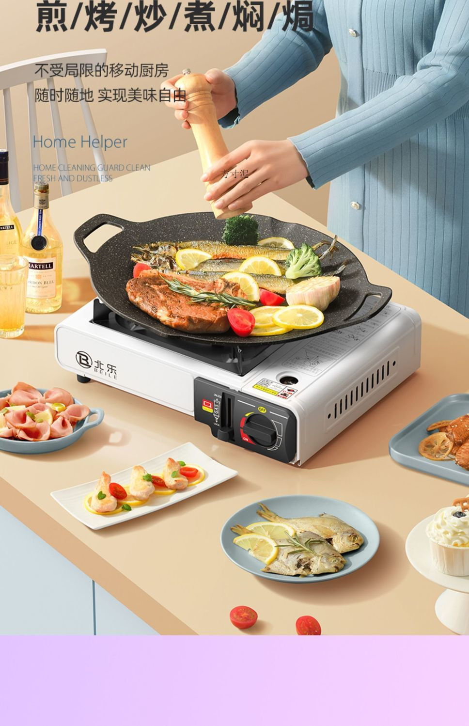 • 아이보리 화이트 [도자기 장인정신/아름다움/단순함] - 베이러 난로 + 가스 4개 + 인터넷 연예인 철판구이 + 화상 방지 나무 손잡이 Aomai 공장 직모