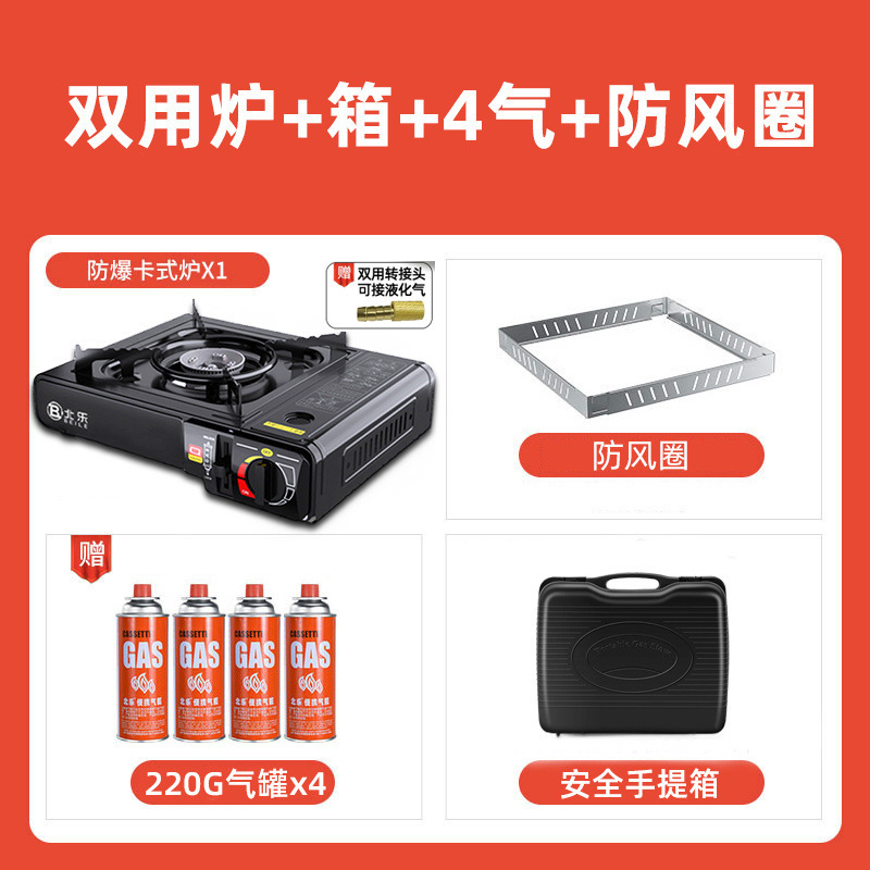 • 비즈니스 블랙 [두꺼운 강판/차분하고 분위기 있는] - 이중 방폭 베일 스토브 + 박스 + 방풍 링 + 가스 오마이 4병 공장 직배송