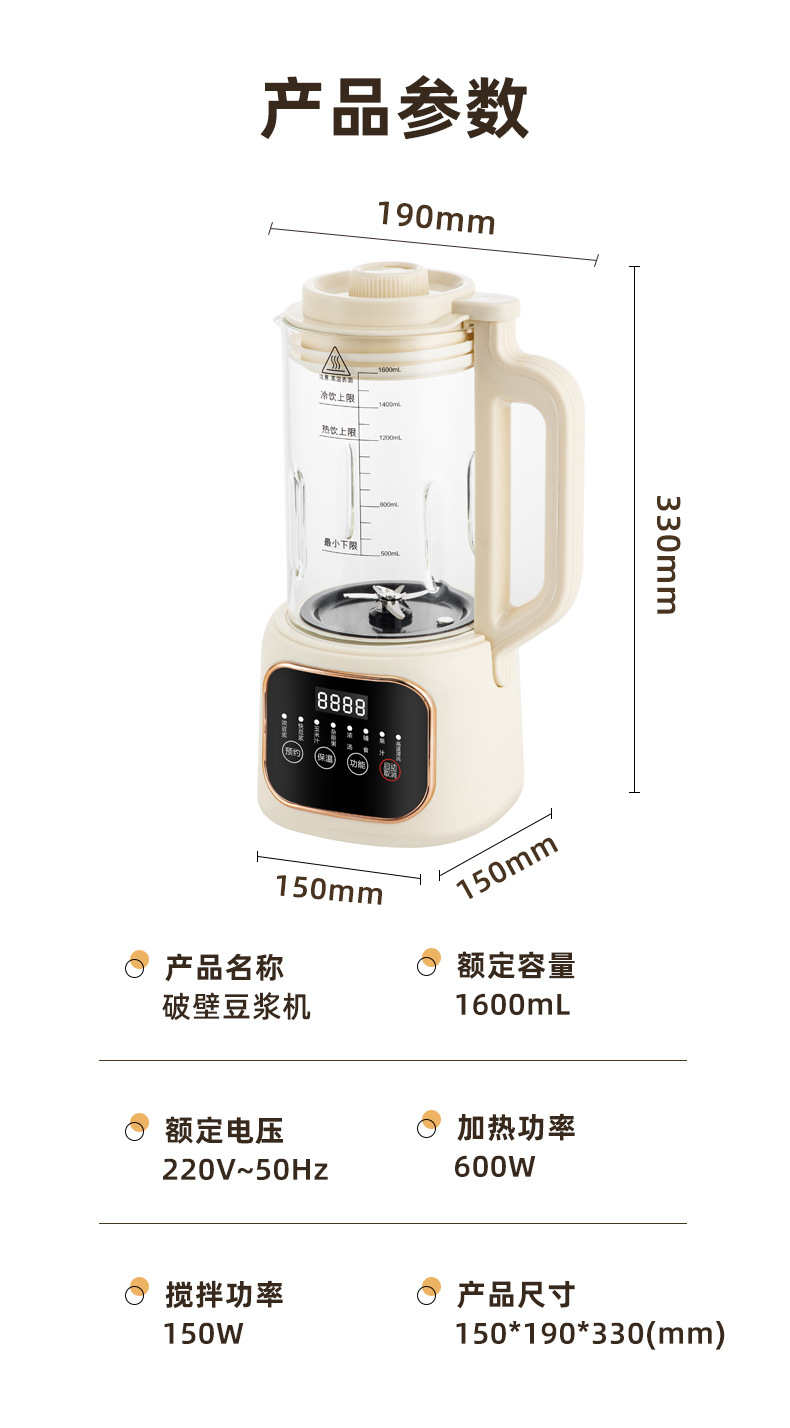 • 1.6L 베이지 벽 파괴 기계(세라믹 유약 + 고붕소 유리) 유럽 플러그