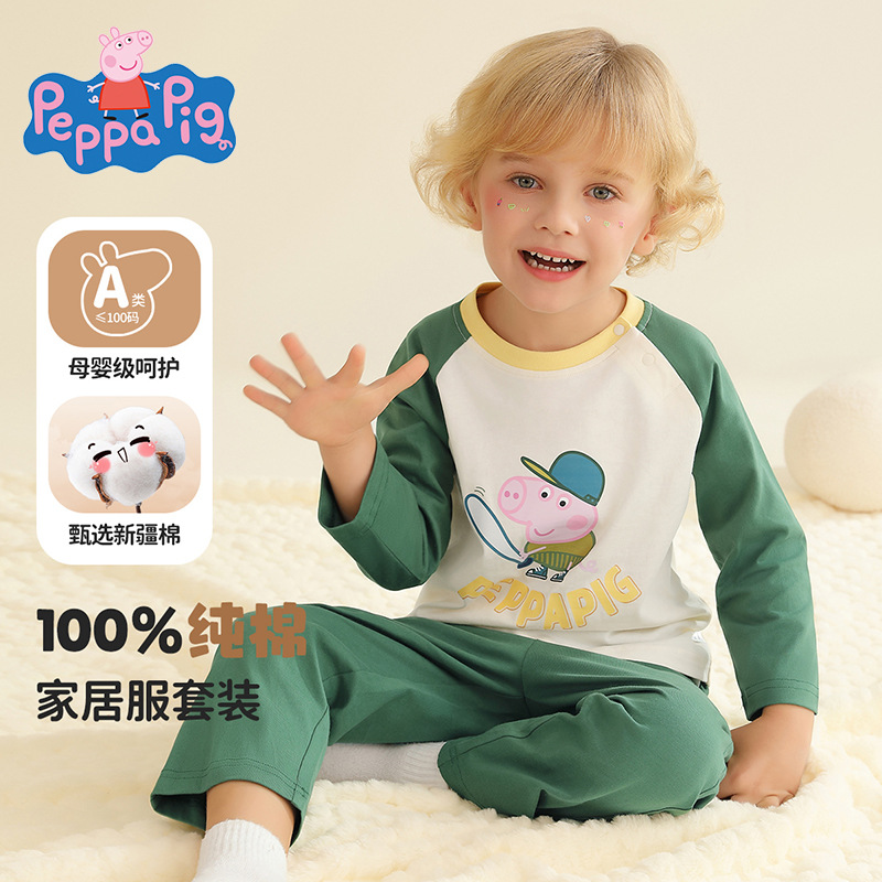 돼지 고기 페이지 아기 캐주얼 홈 의류 세트 긴팔 가을 옷 소년 아기 어린이 잠옷 가을 옷 투피스 세트스토어 가기