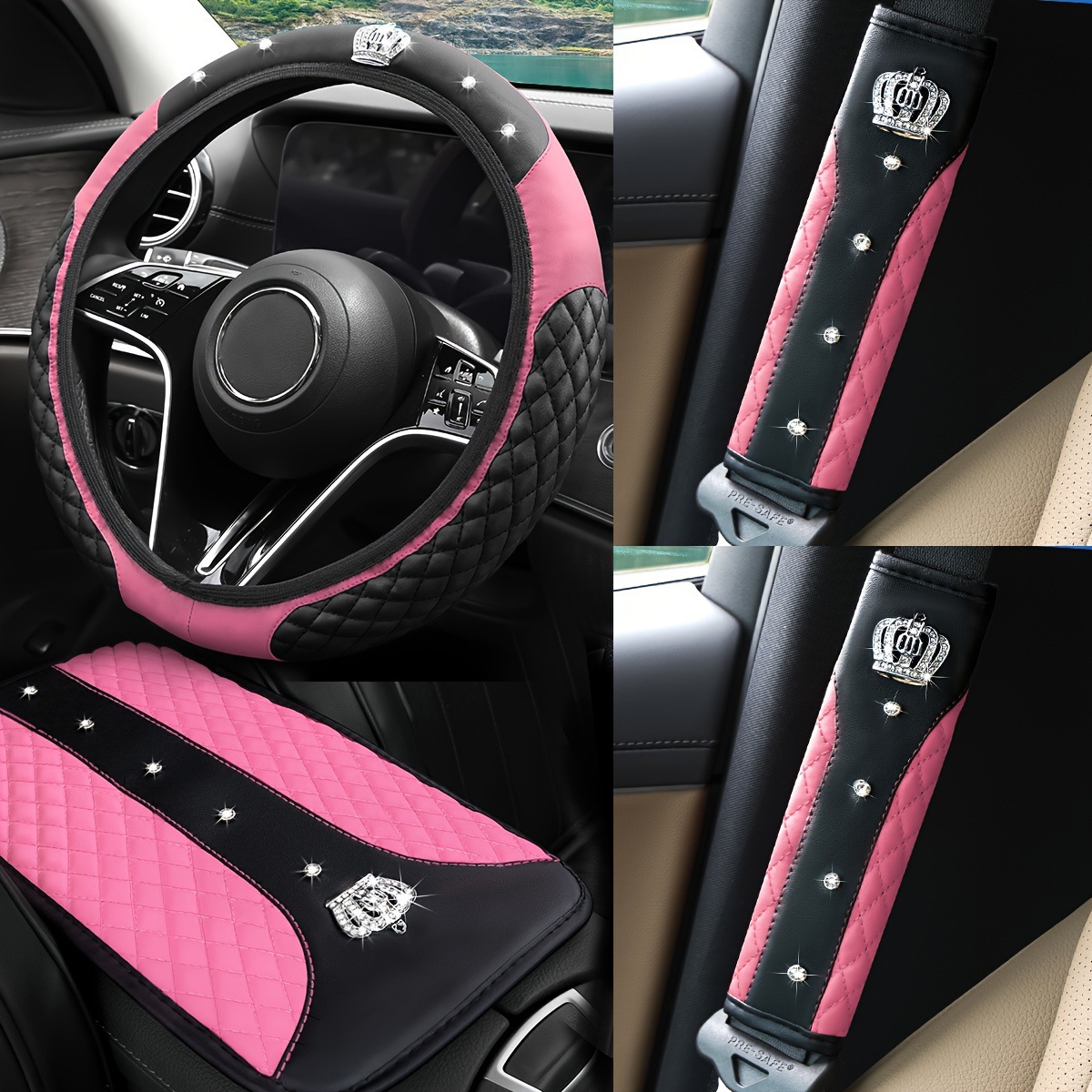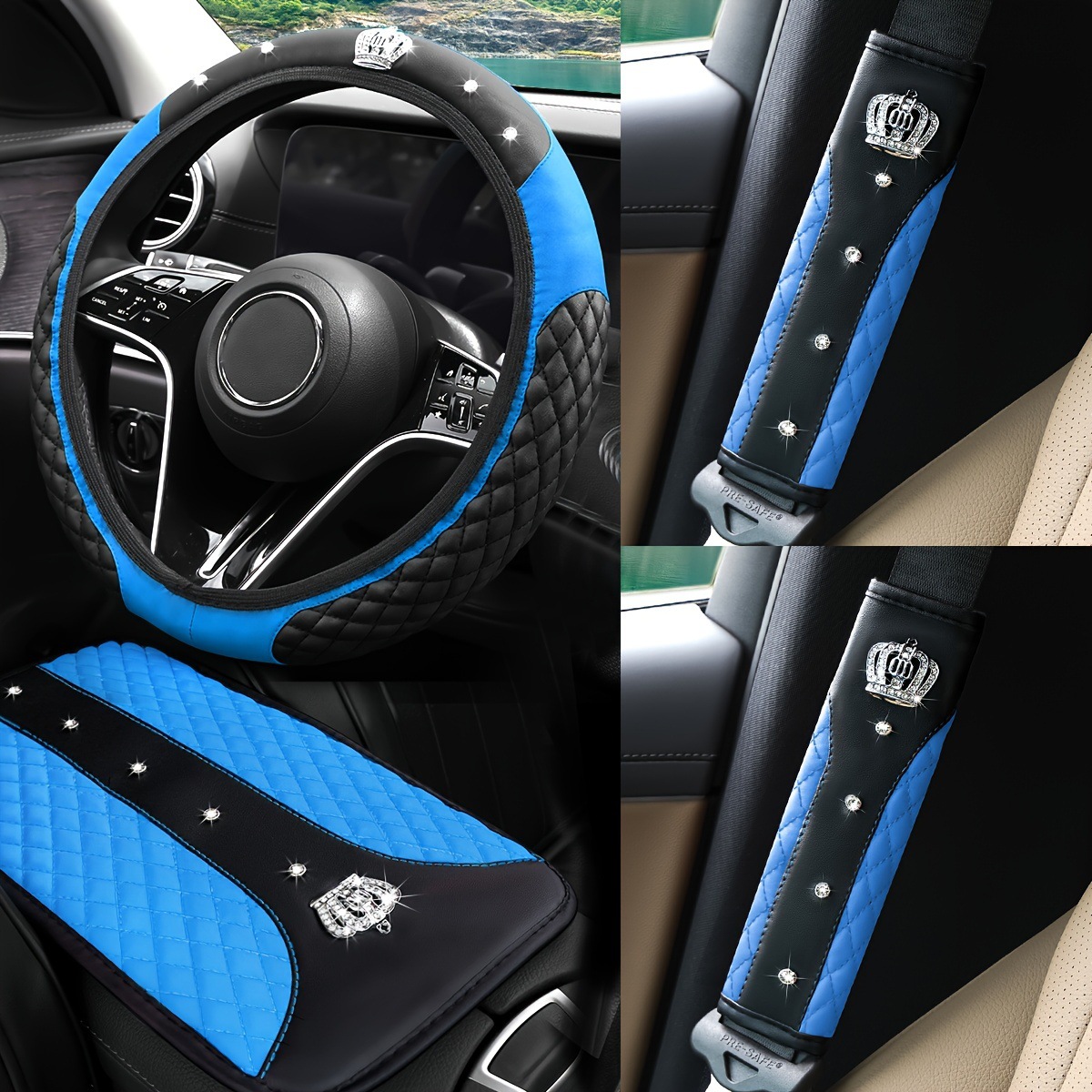 자동차 스티어링 휠 세트 다이아몬드 크라운 어깨 패드 팔걸이 상자 쿠션 4 피스 고품질 국경 간 폭발 도매스토어 가기