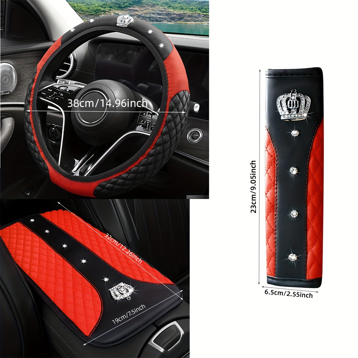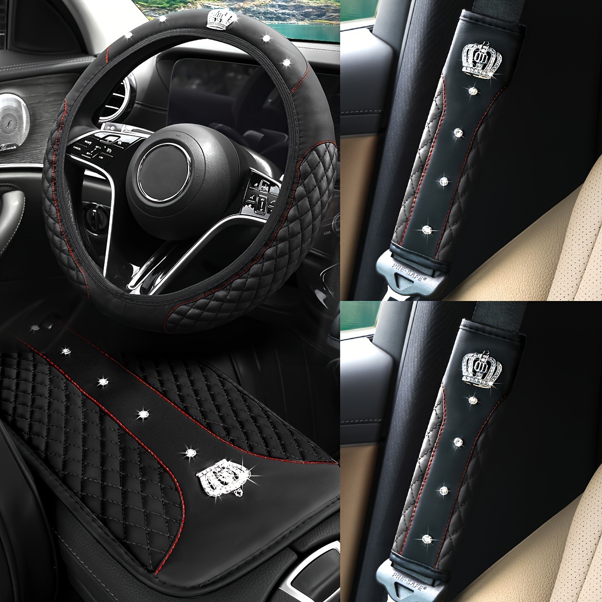 자동차 스티어링 휠 세트 다이아몬드 크라운 어깨 패드 팔걸이 상자 쿠션 4 피스 고품질 국경 간 폭발 도매