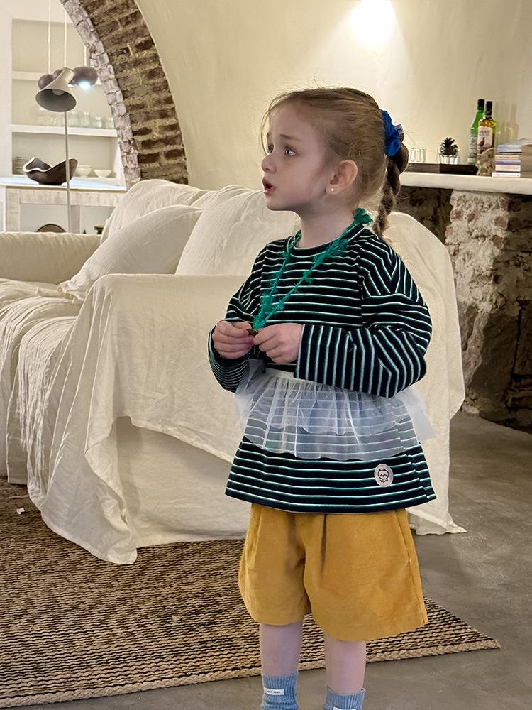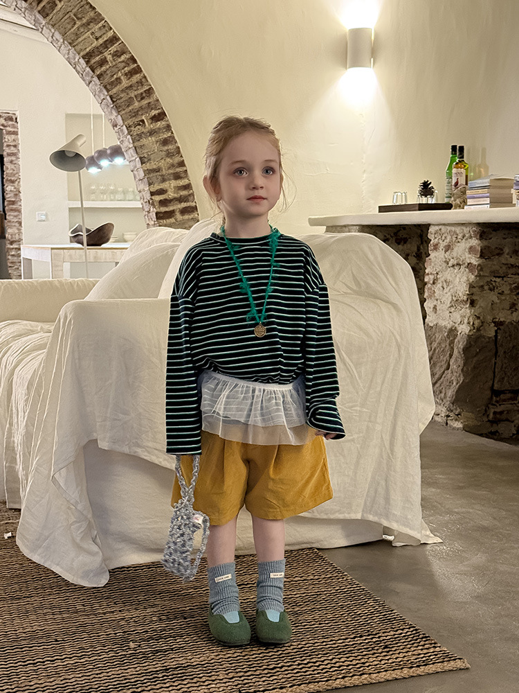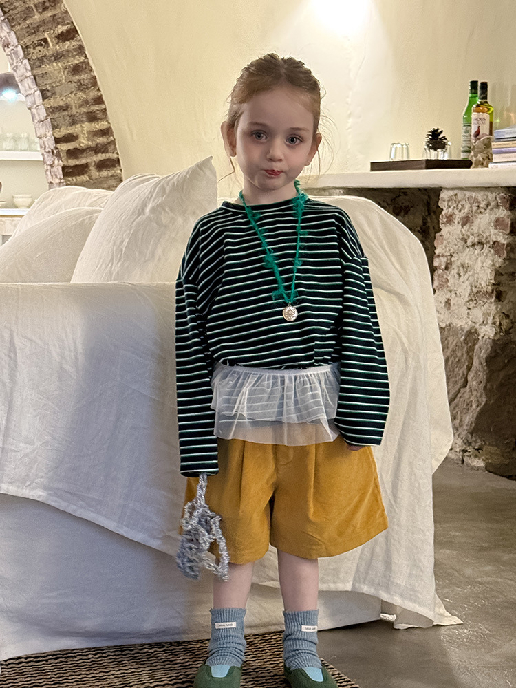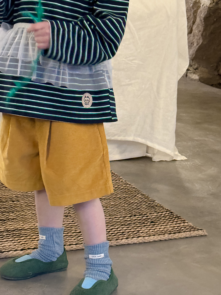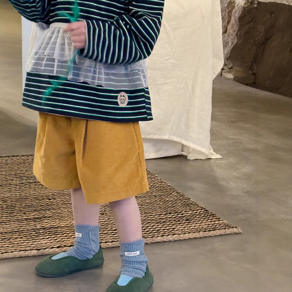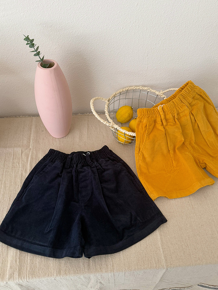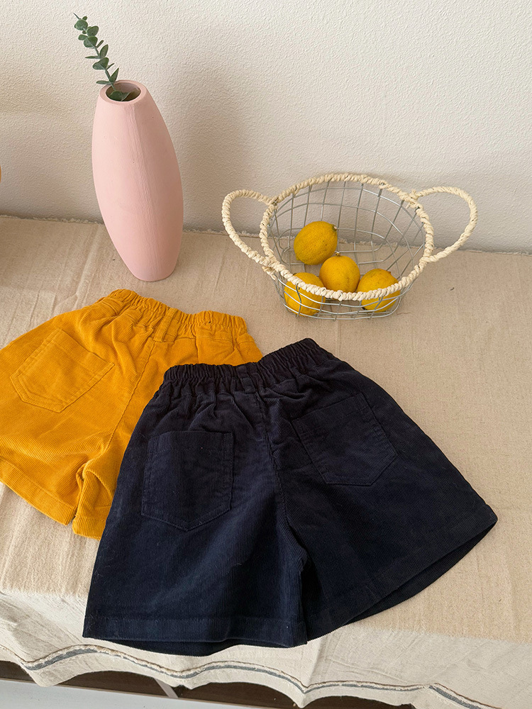 Huzhou Zhili 아동복 2025 봄 신작 한국 스타일 코듀로이 반바지 소년 소녀용 아동용 단색 바지 반바지스토어 가기
