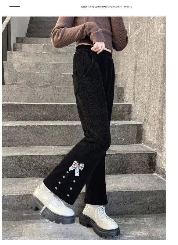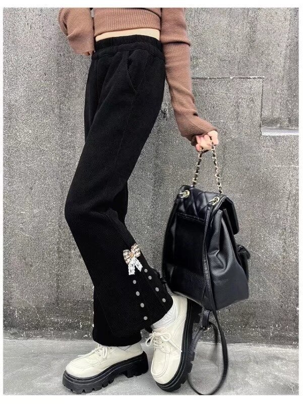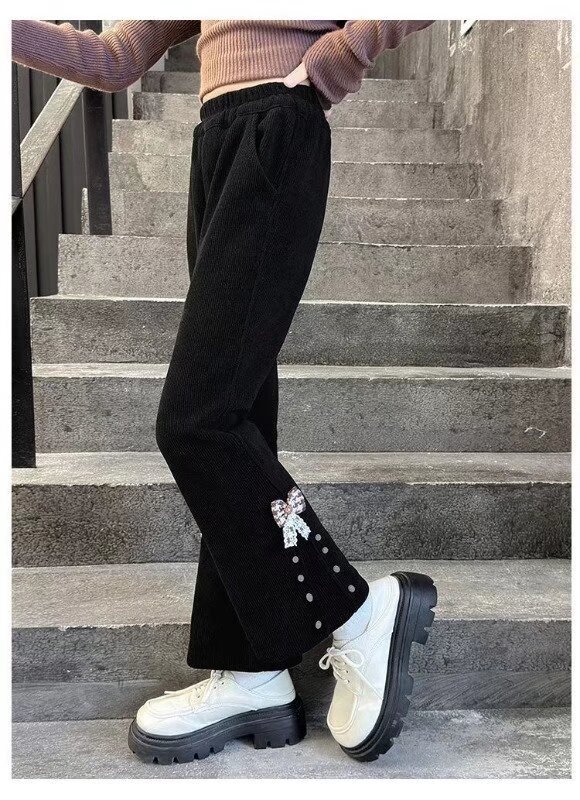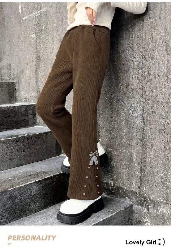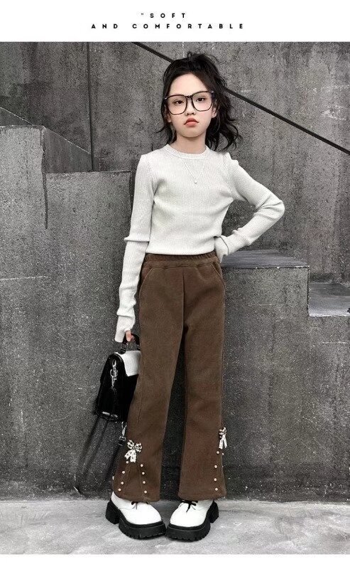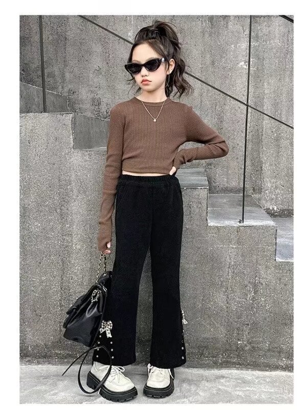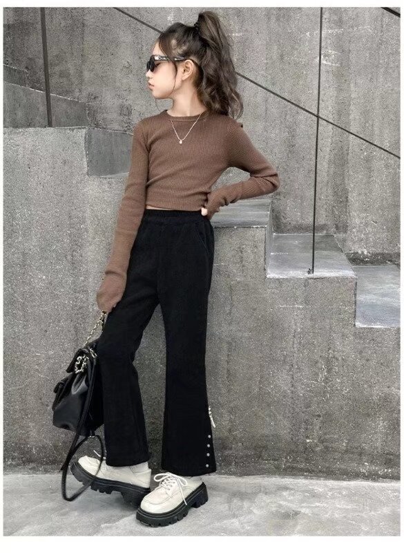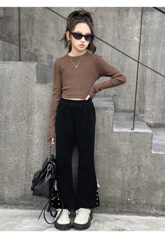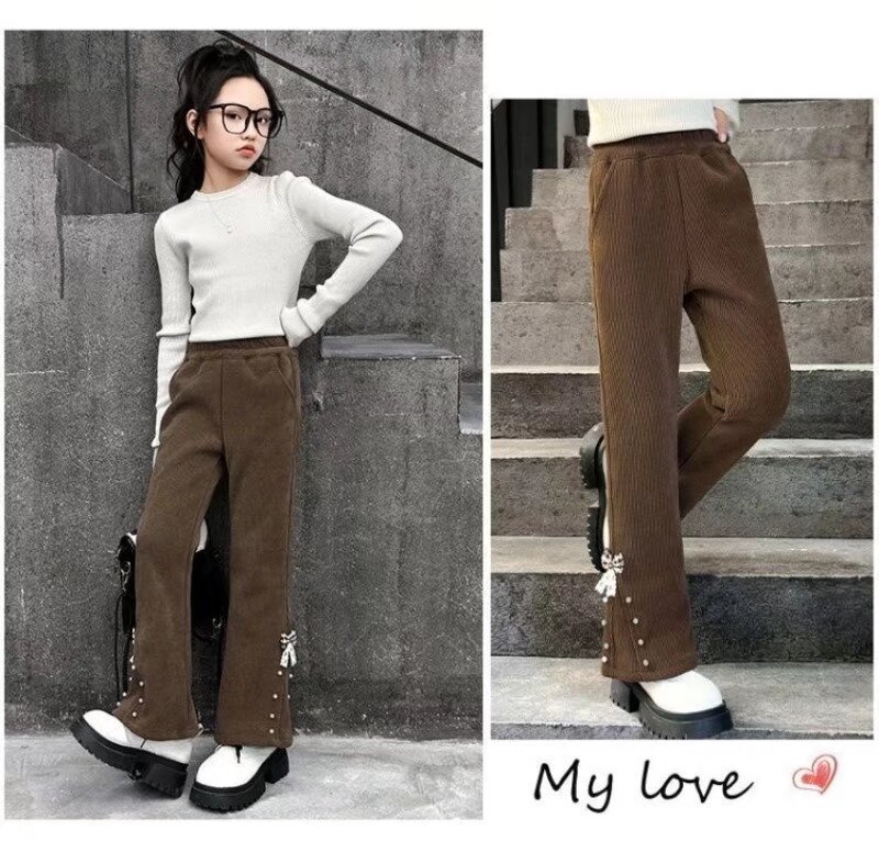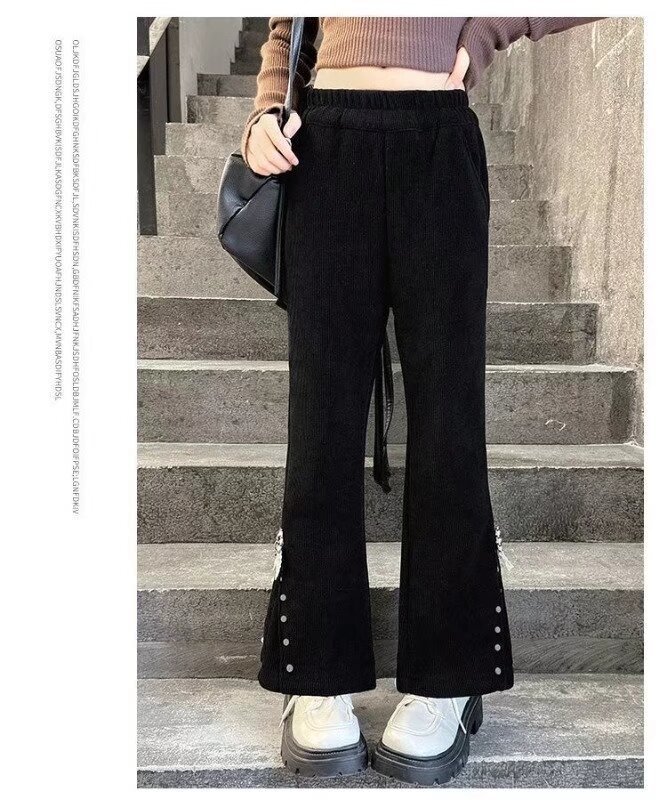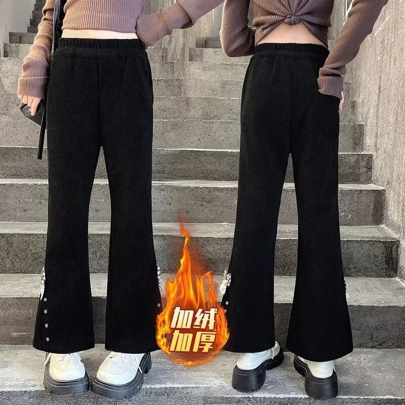 소녀 바지 겨울 새 플레어 바지 2024 캐주얼 바지 가을과 겨울 큰 어린이 틈새 디자인 센스 바지스토어 가기
