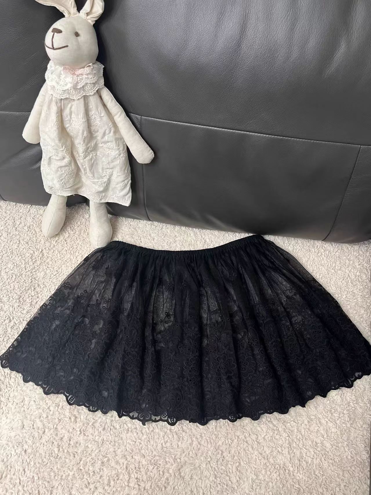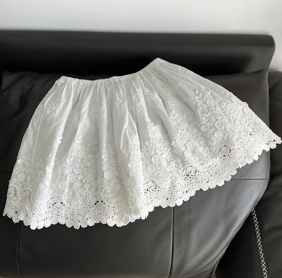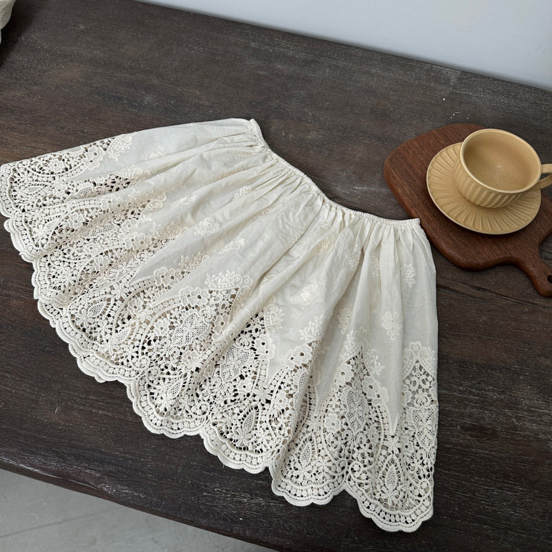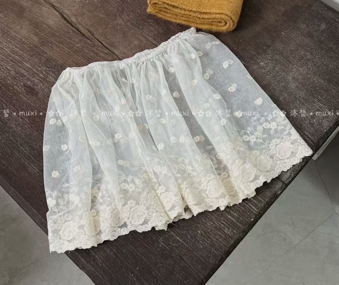 아트 커튼 짧은 스커트 탄성 허리 자수 레이스 짧은 외부 방귀 커튼 모리 소녀 달콤한 클리어 레이스