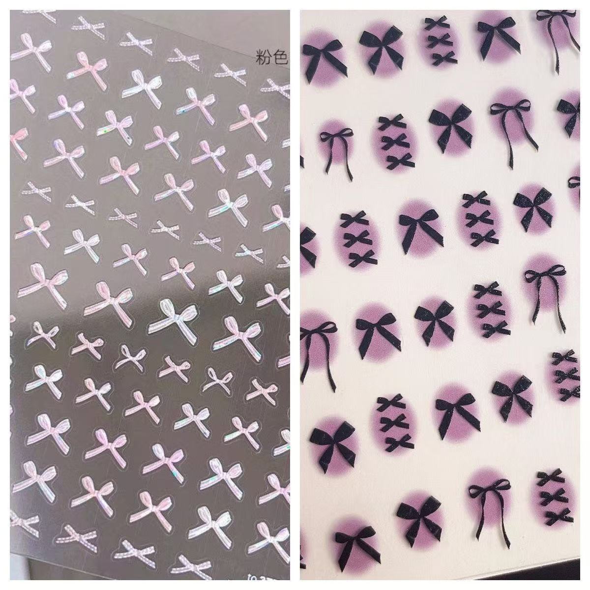 새로운 3D 그라디언트 후광 활 네일 스티커 3 차원 속이 빈 부드러운 달콤한 소녀 네일 스티커 도매스토어 가기