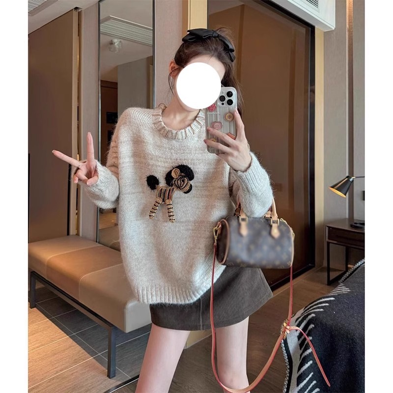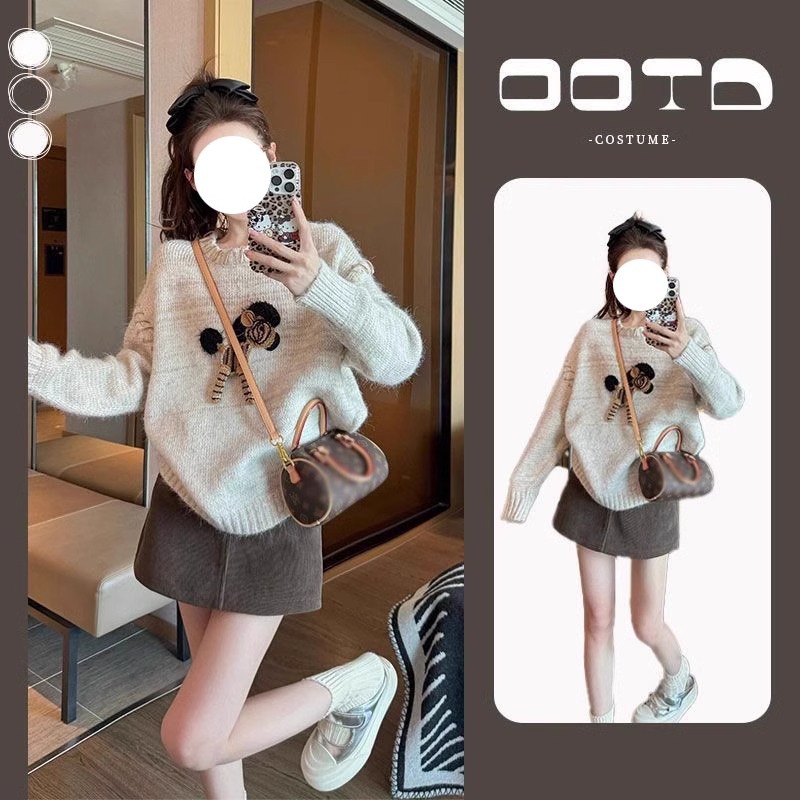 여성용 한국식 풀오버 프린트 느슨한 니트 스웨터 슬림 스커트 투피스 세트 세트와 함께 겨울스토어 가기