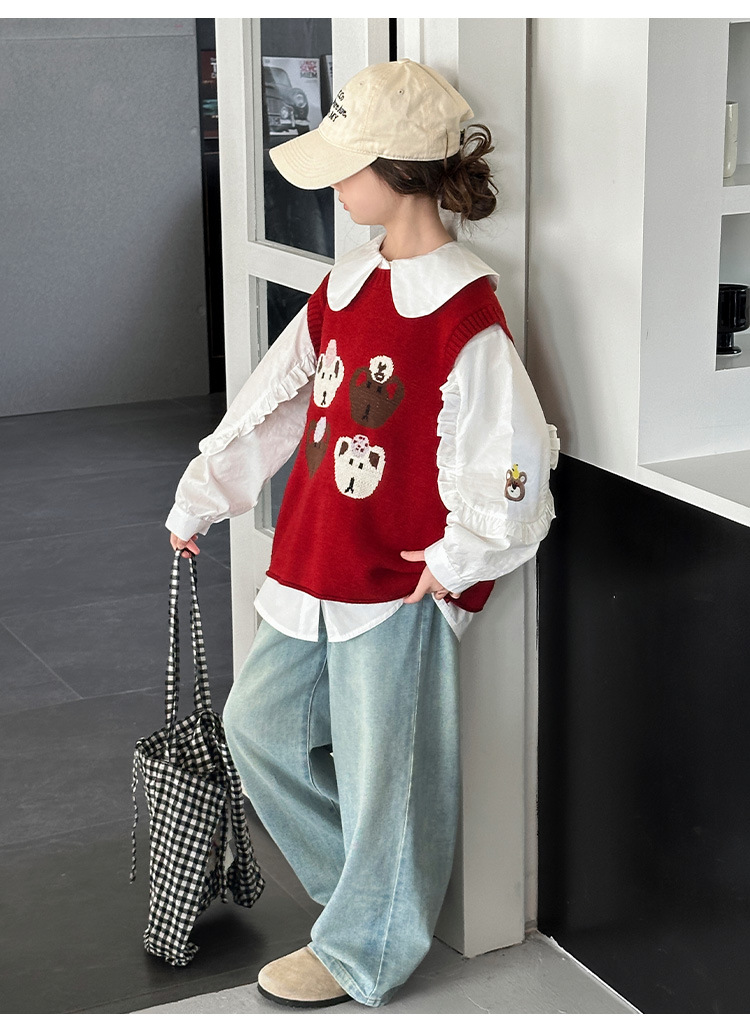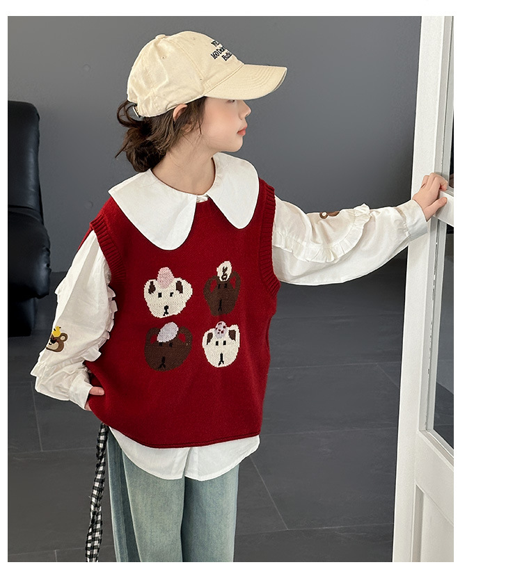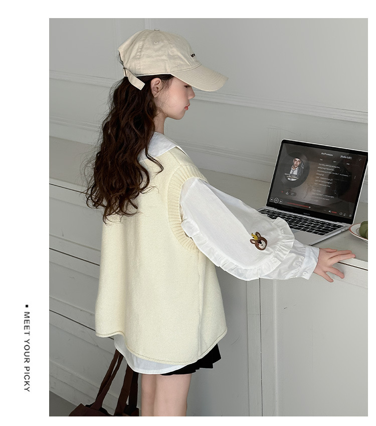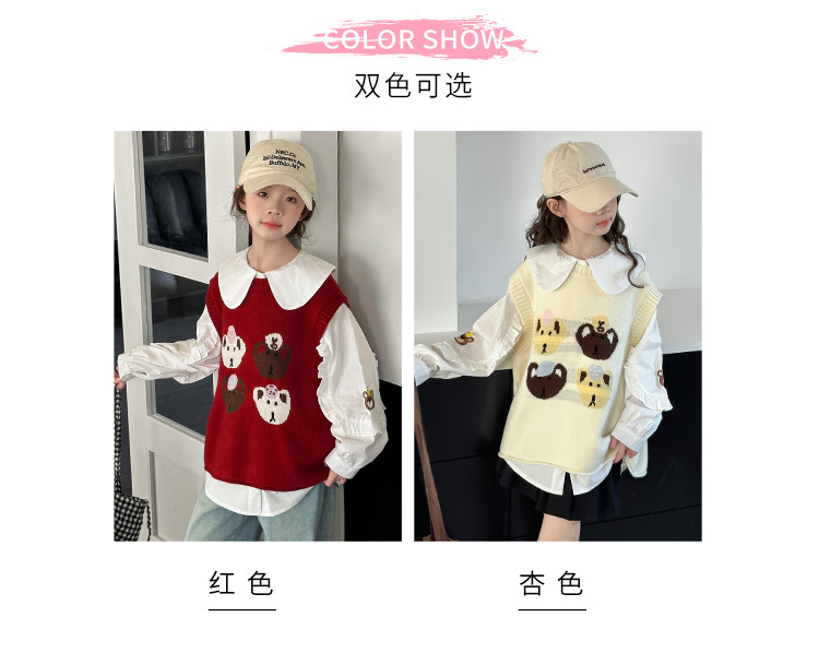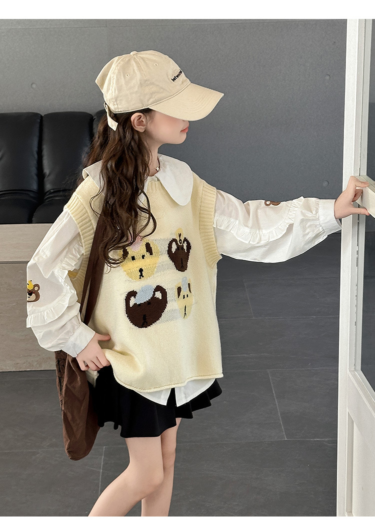 여자 스웨터 조끼 셔츠 3 조각 봄 2025 새로운 어린이 서양식 한국 스타일 소녀의 봄 세트