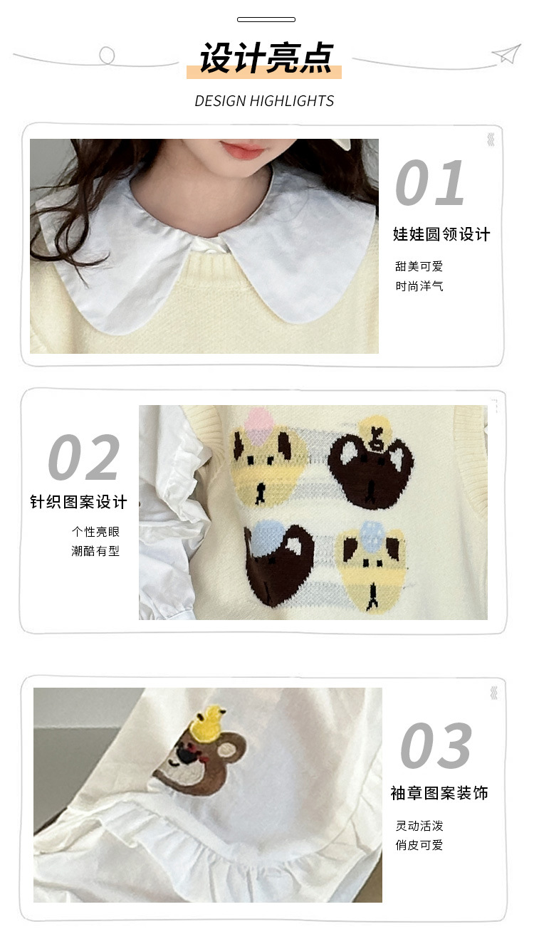 여자 스웨터 조끼 셔츠 3 조각 봄 2025 새로운 어린이 서양식 한국 스타일 소녀의 봄 세트스토어 가기