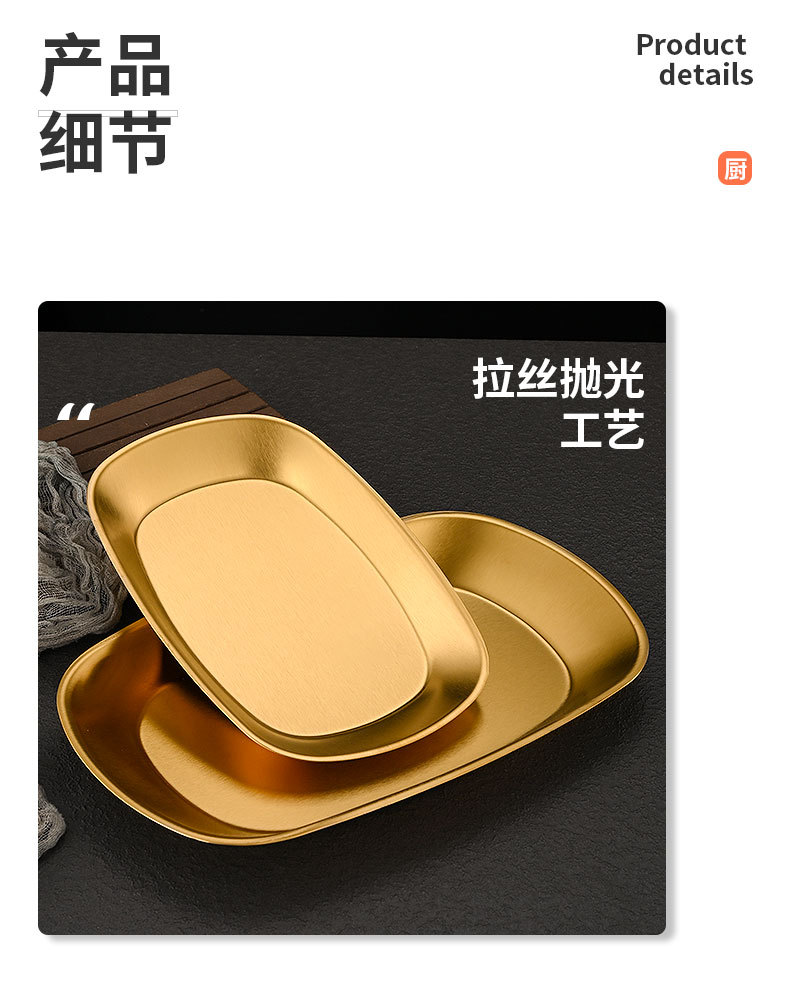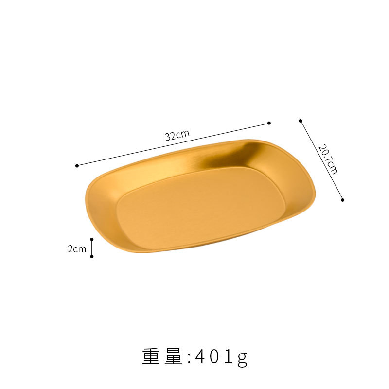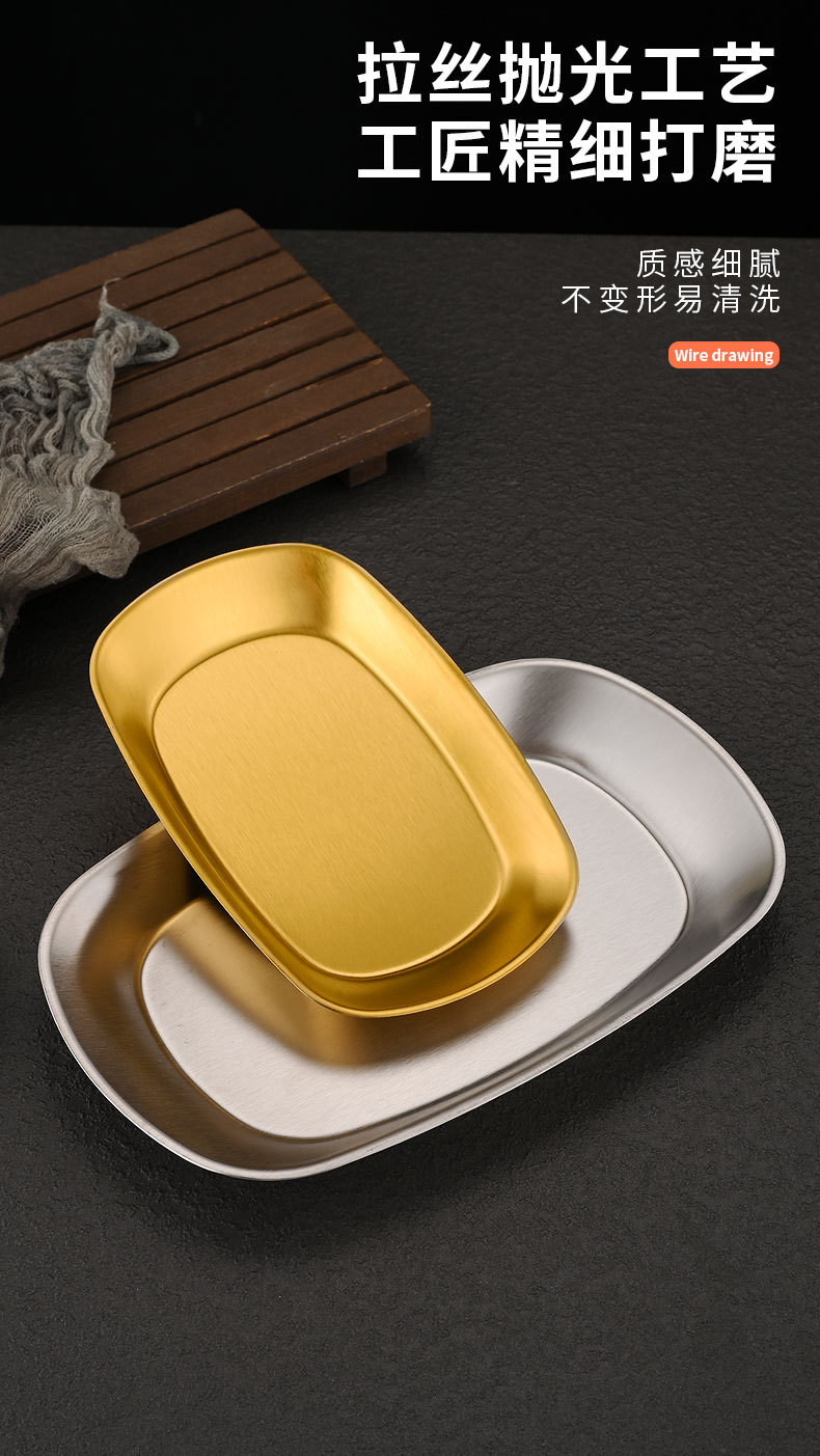 한국식 스테인레스 스틸 딥 플레이트 골든 직사각형 트레이 주방 가정용 디너 플레이트 플랫 바닥 스낵 바베큐 얕은 플레이트