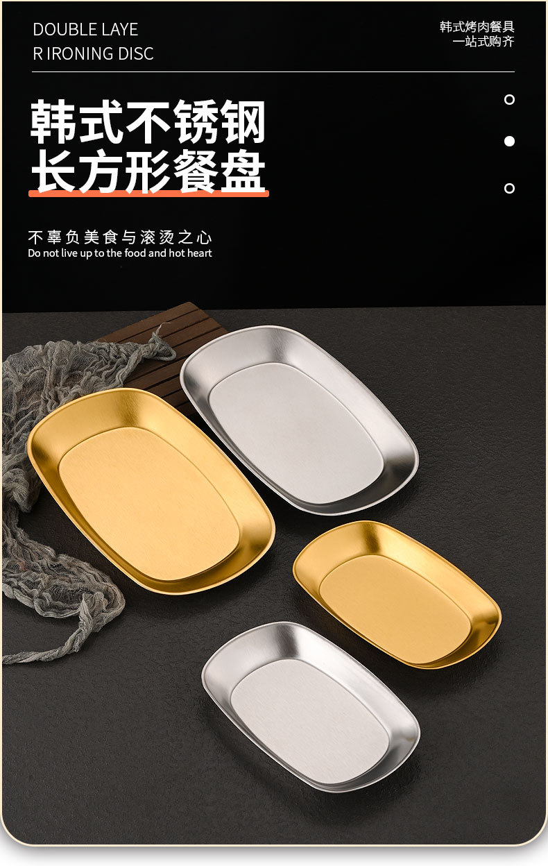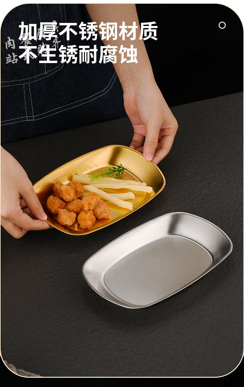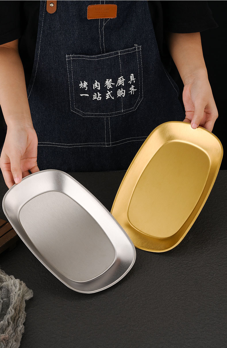 한국식 스테인레스 스틸 딥 플레이트 골든 직사각형 트레이 주방 가정용 디너 플레이트 플랫 바닥 스낵 바베큐 얕은 플레이트스토어 가기