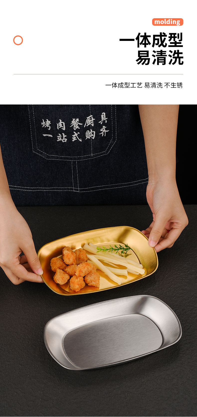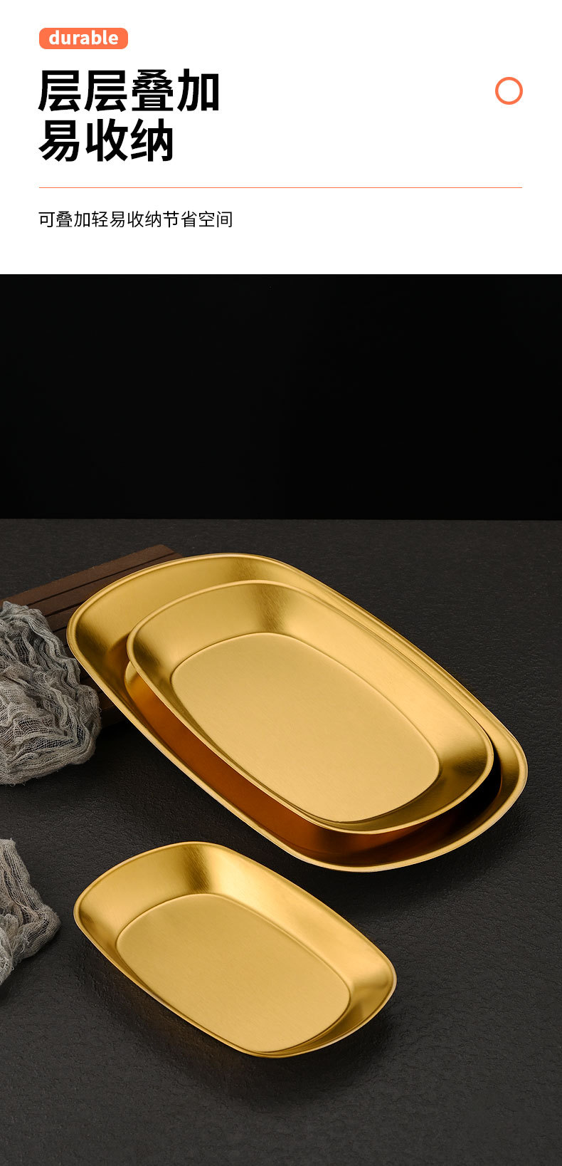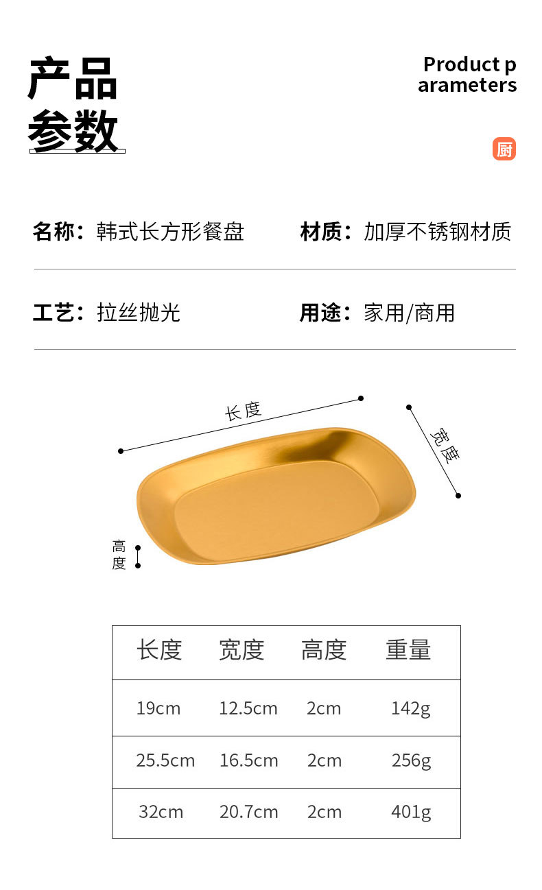 한국식 스테인레스 스틸 딥 플레이트 골든 직사각형 트레이 주방 가정용 디너 플레이트 플랫 바닥 스낵 바베큐 얕은 플레이트스토어 가기