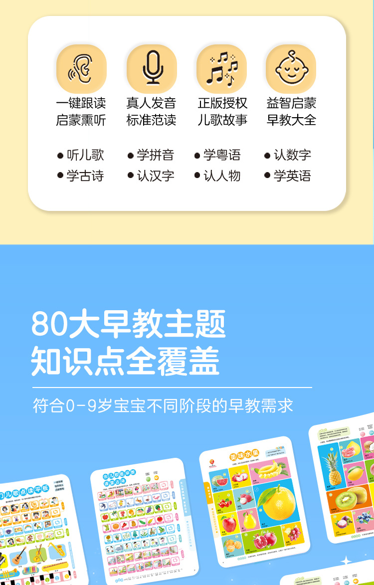 0-9 세 어린이들이 학습 기계, 중국어, 영어 및 광동어 조기 교육 깨달음을 읽는 것을 가리키는 조기 교육 만능 오디오 북을 말하고 부를 수 있습니다.스토어 가기