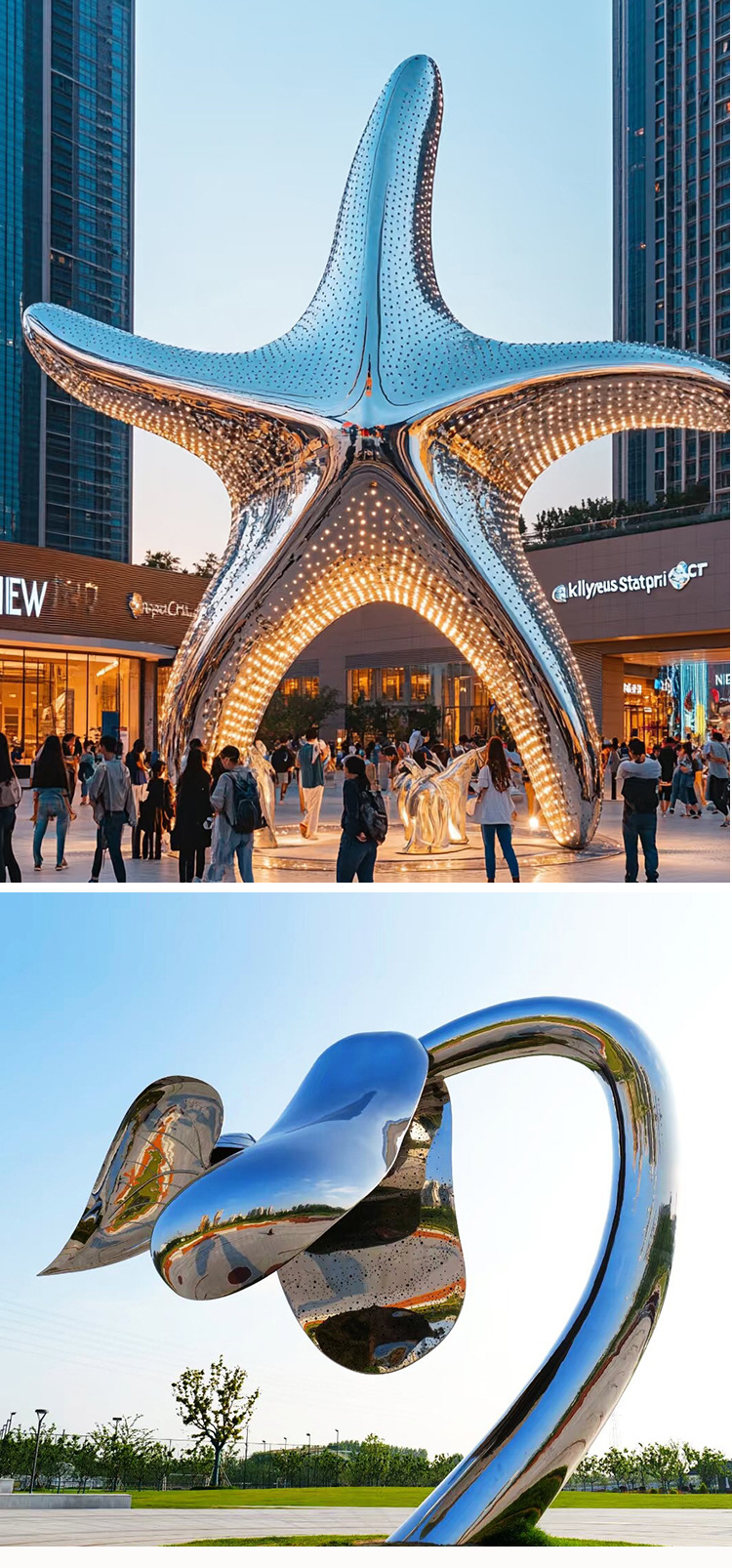 스테인레스 스틸 조각 맞춤형 풍경 지점 랜드마크 특별한 모양의 수경 조각 금속 거울 창조적 인 정원 조경 조각