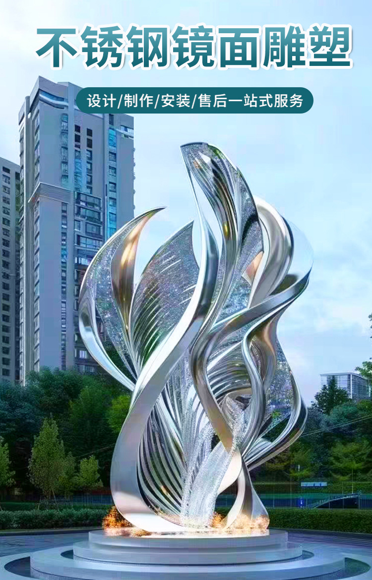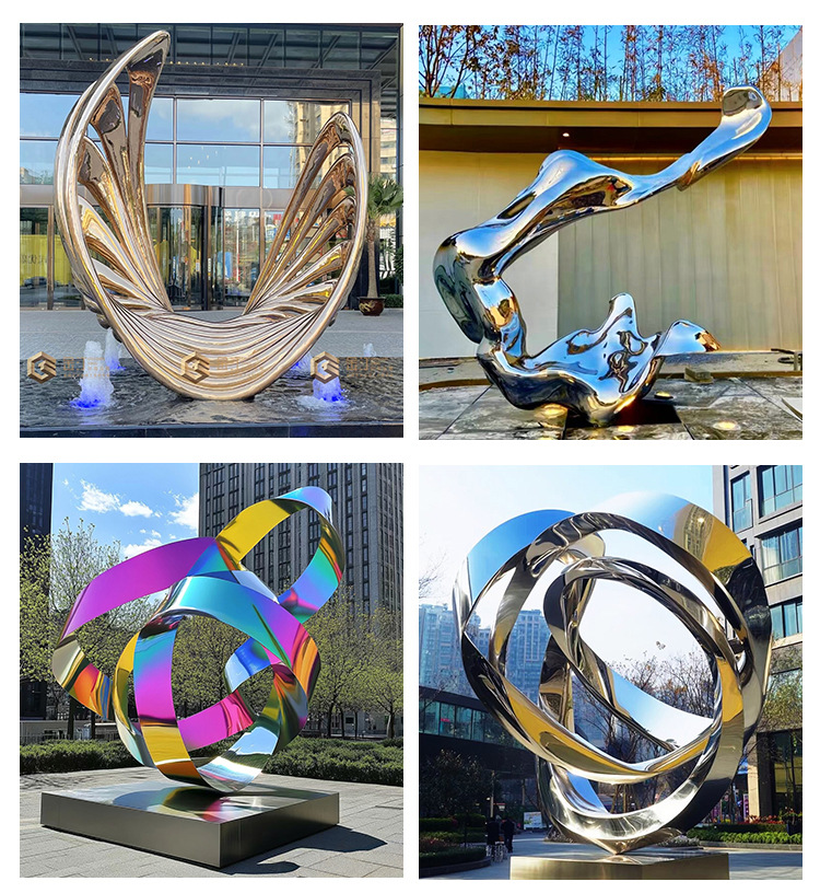 스테인레스 스틸 조각 맞춤형 풍경 지점 랜드마크 특별한 모양의 수경 조각 금속 거울 창조적 인 정원 조경 조각스토어 가기