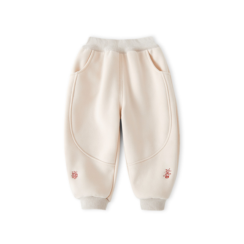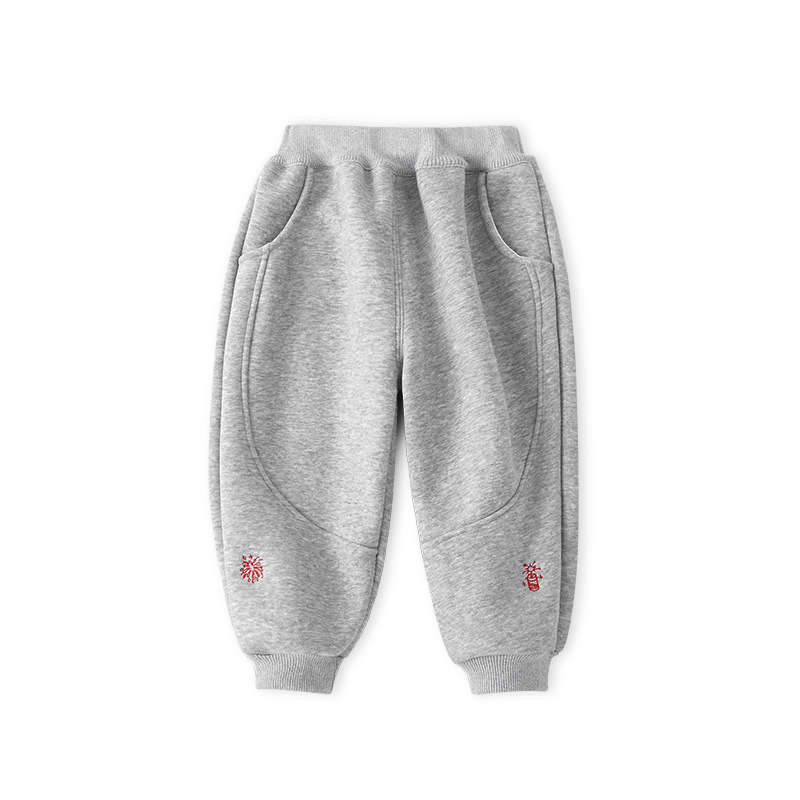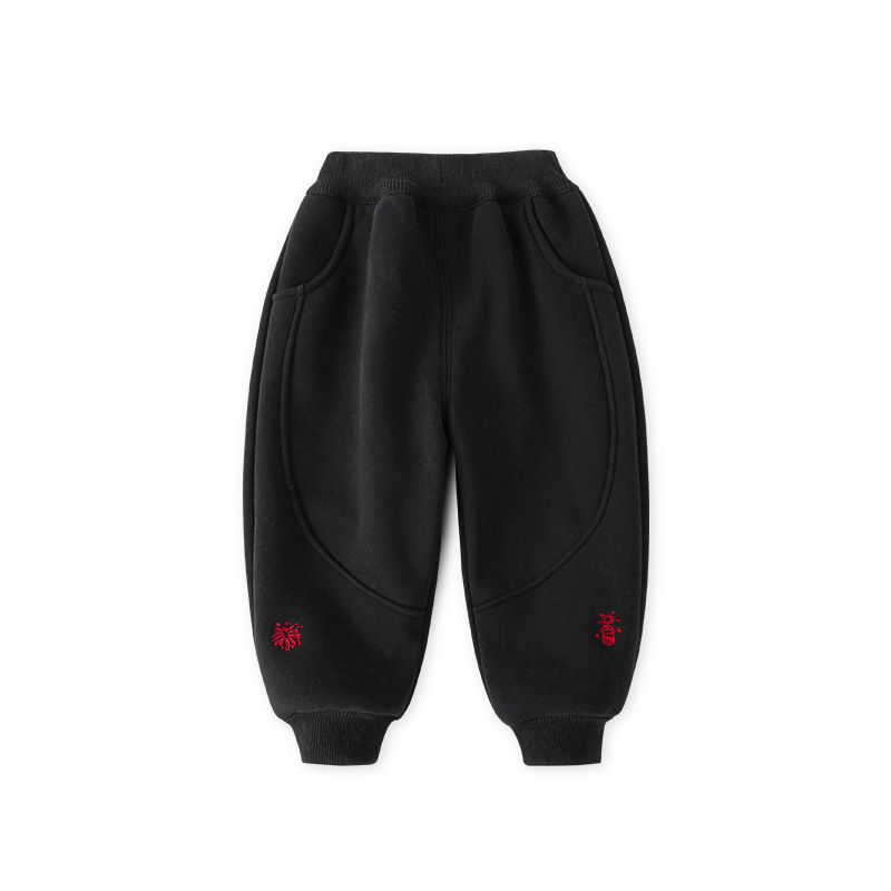 소년 기모 바지 한 조각 벨벳 어린이 바지 아기 새해 빨간 바지 가을 및 겨울 새해 서비스