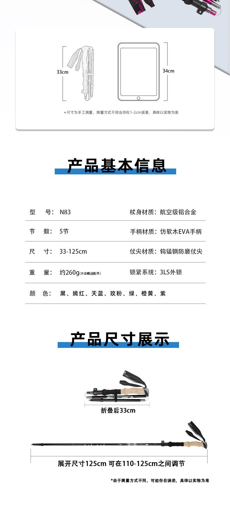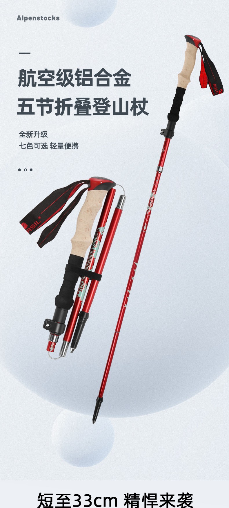 Alpenstock 알루미늄 합금 초경량 텔레스코픽 접이식 야외 남성과 여성의 다기능 지팡이 N83