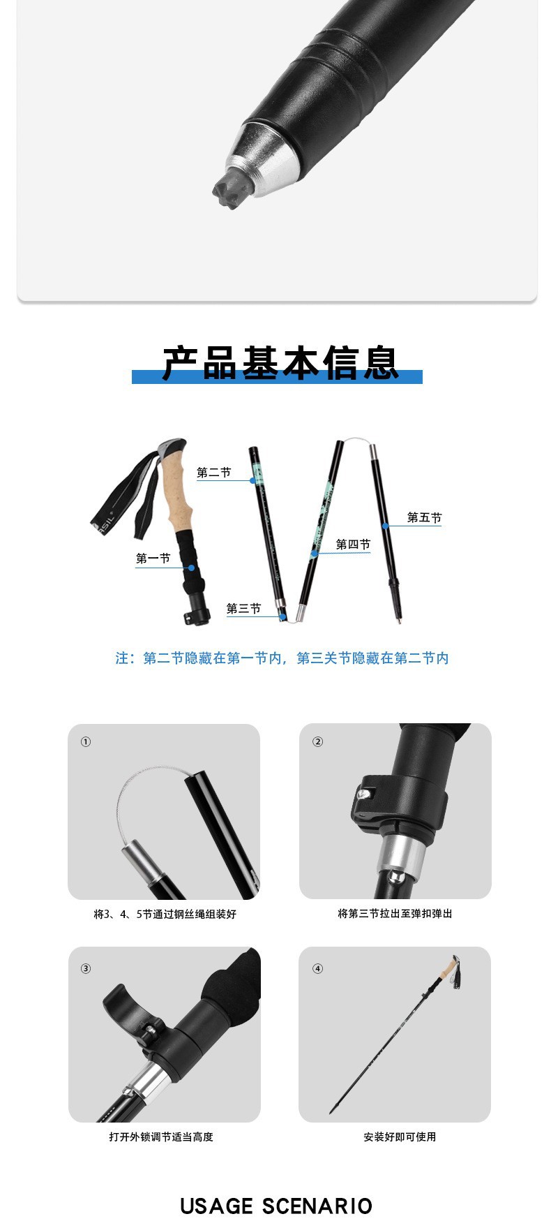 Alpenstock 알루미늄 합금 초경량 텔레스코픽 접이식 야외 남성과 여성의 다기능 지팡이 N83스토어 가기