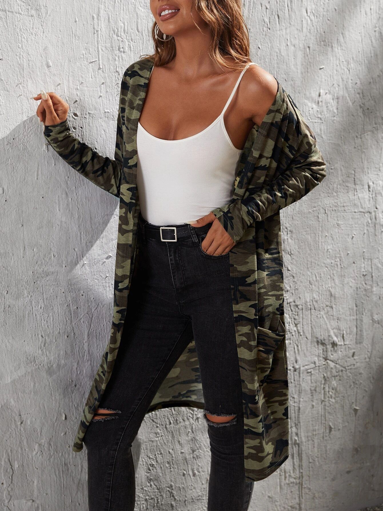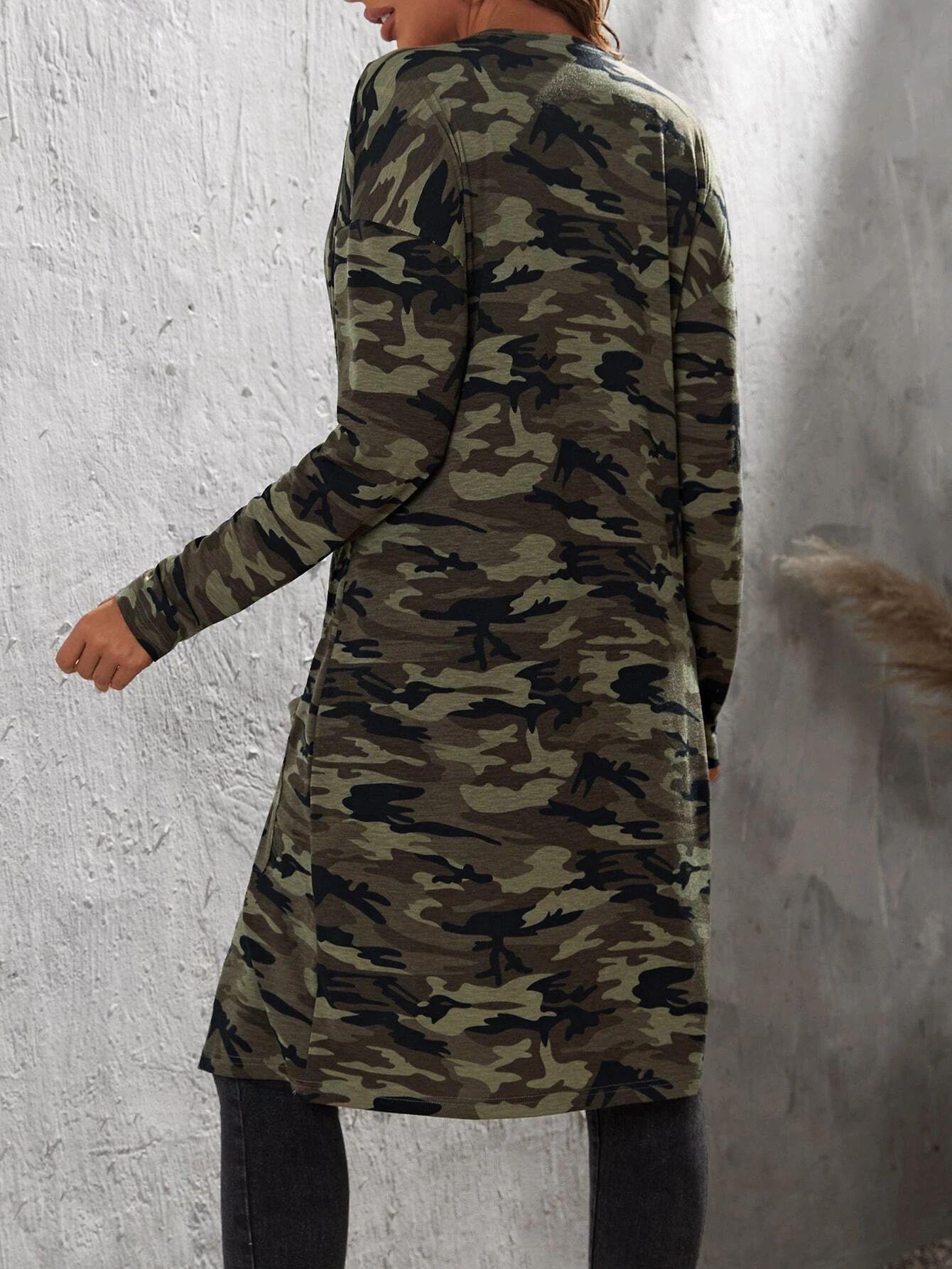 유럽과 미국의 여성 코트 패션 캐주얼 위장 인쇄 포켓 여성용 롱 탑 카디건 스웨터 재킷스토어 가기
