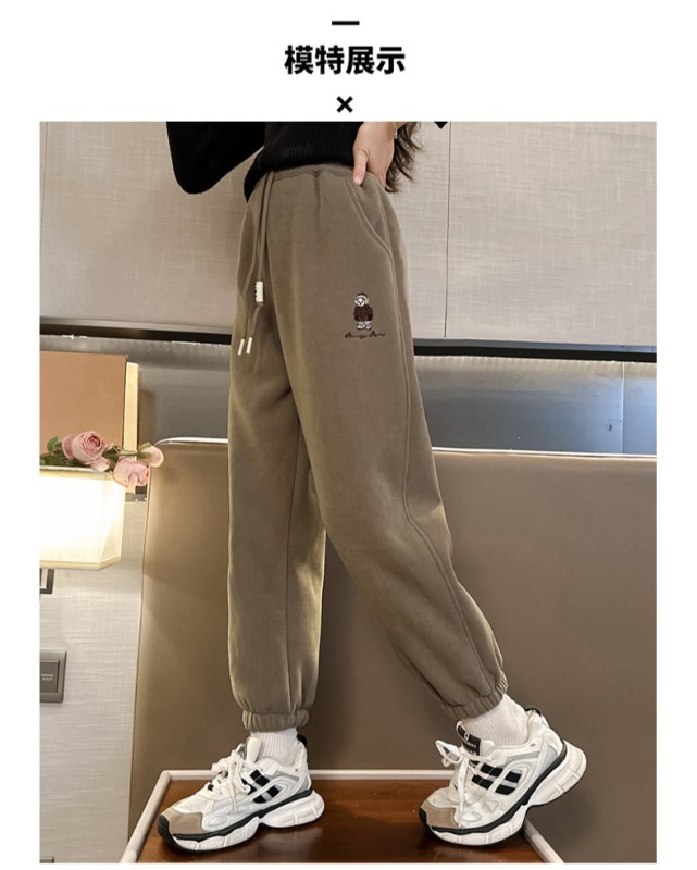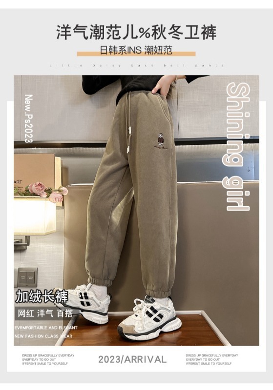 소녀 바지 가을/겨울 기모 외부 착용 2024 새로운 스타일 어린이 두꺼운 코듀로이 바지 겨울 어린이 땀 바지스토어 가기