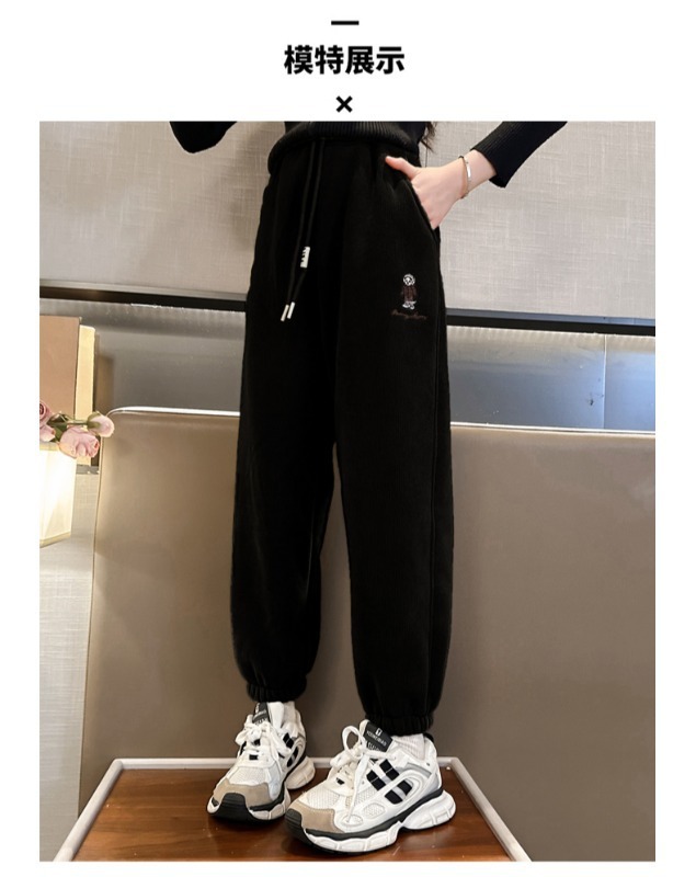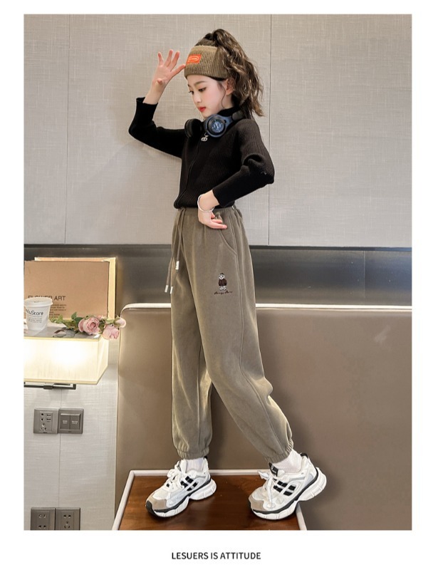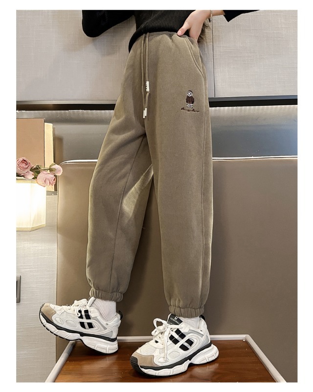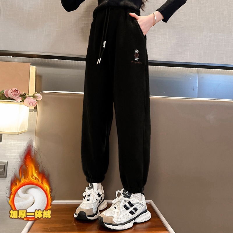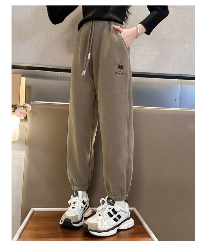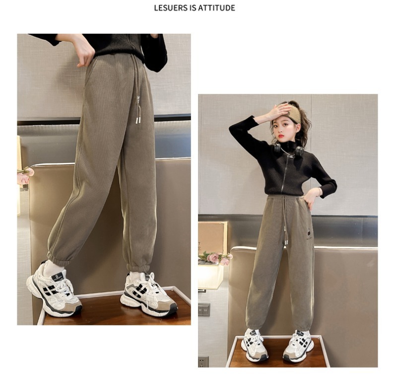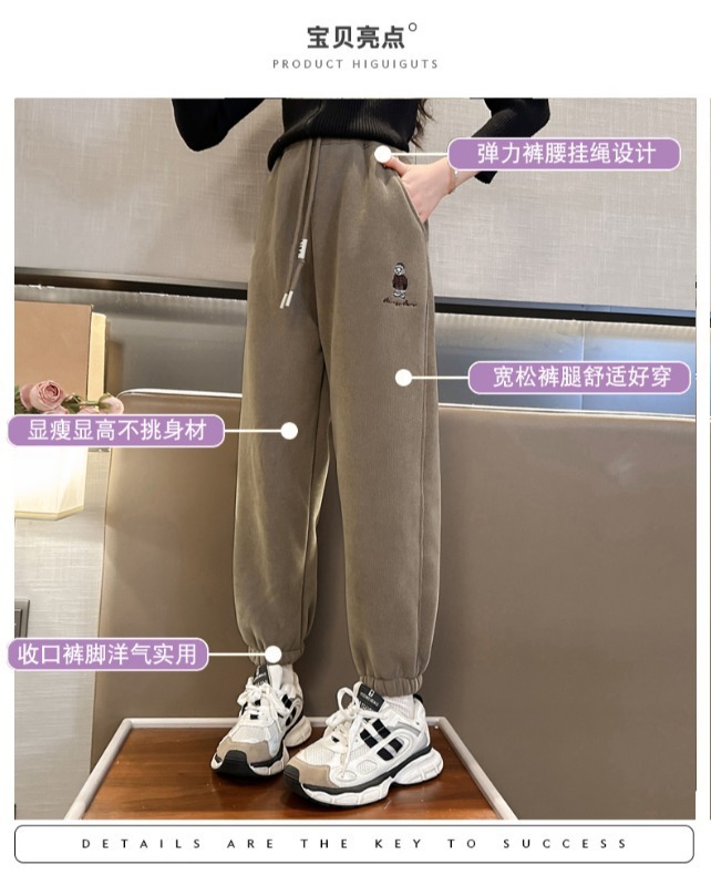 소녀 바지 가을/겨울 기모 외부 착용 2024 새로운 스타일 어린이 두꺼운 코듀로이 바지 겨울 어린이 땀 바지