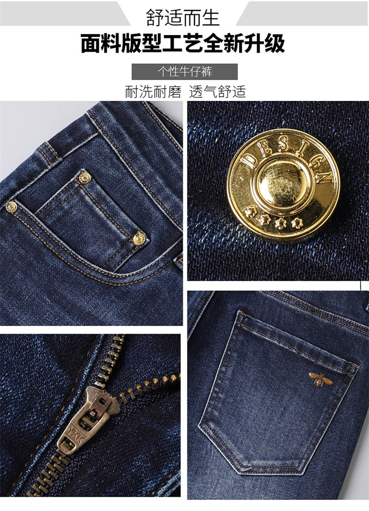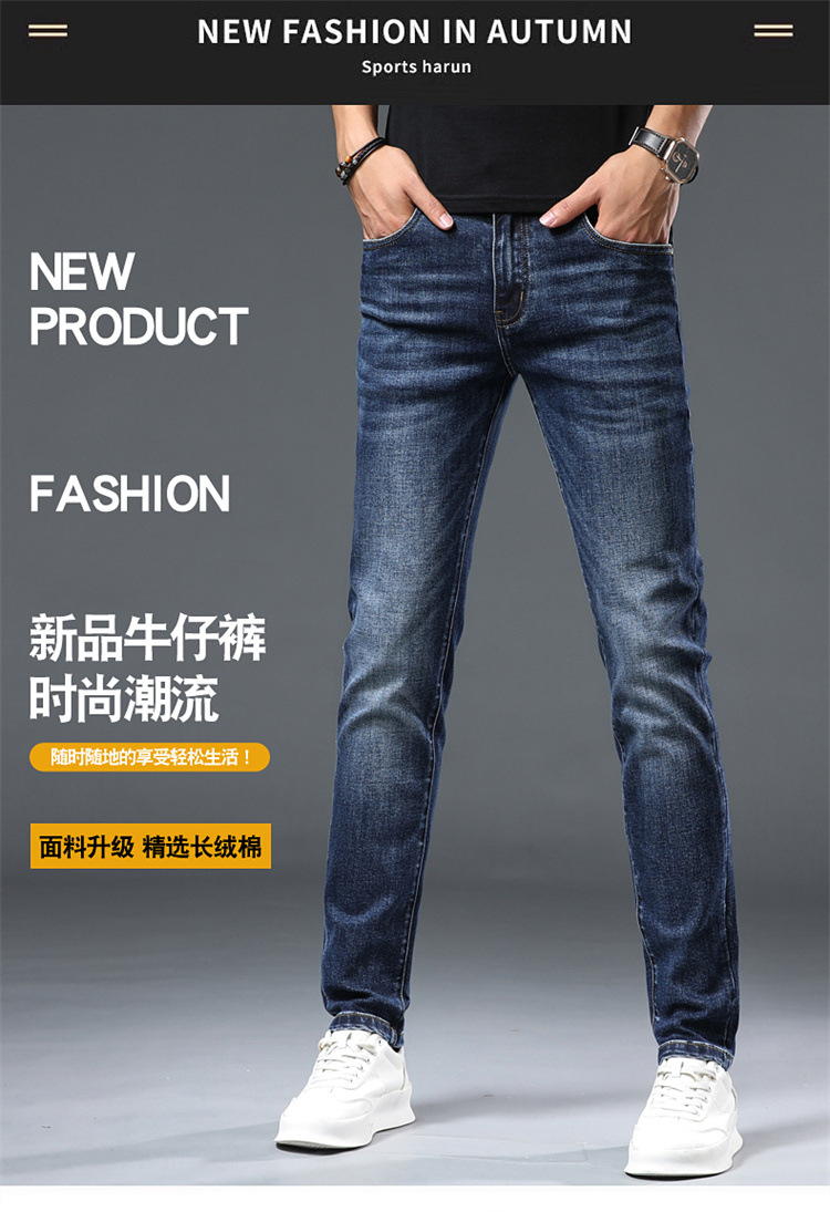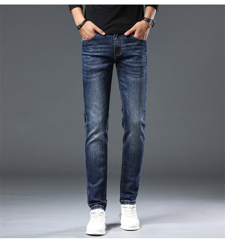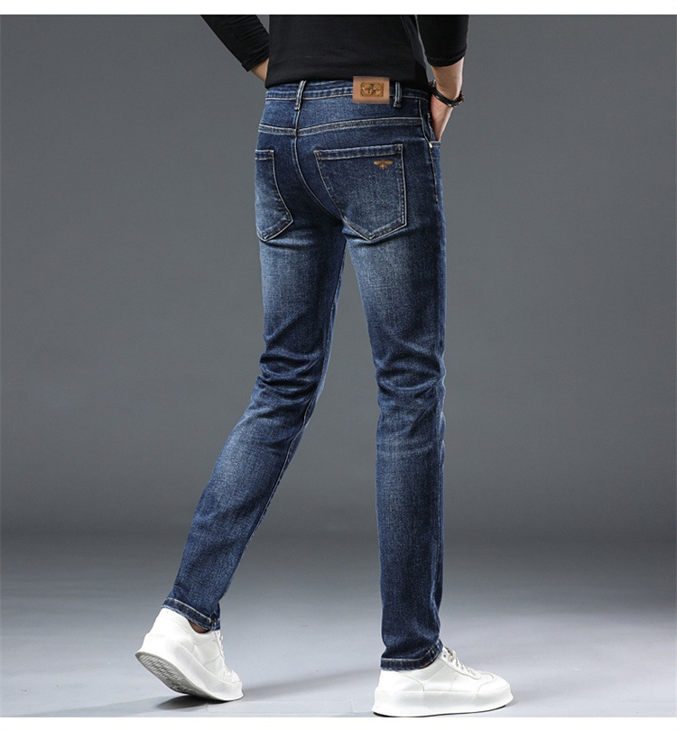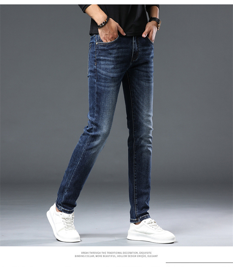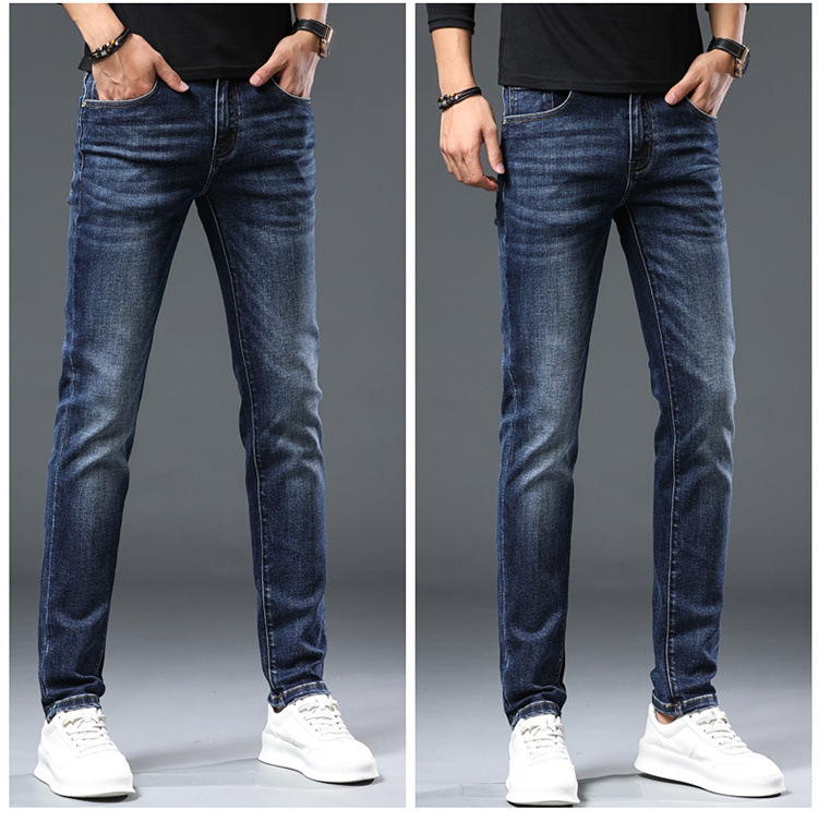 가을과 겨울 하이 엔드 라이트 럭셔리 청바지 남성용 유럽 역 트렌디 브랜드 스트레치 슬림 핏 스키니 바지 남성용 캐주얼 바지