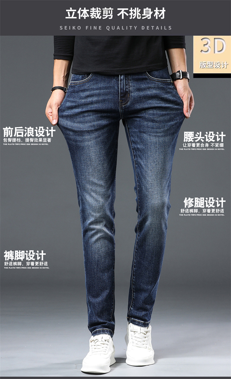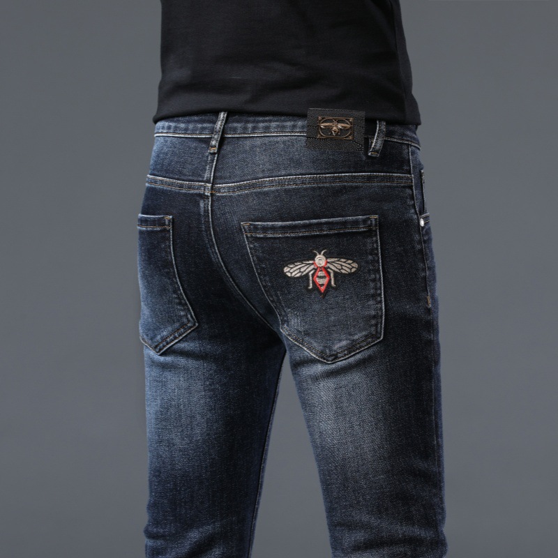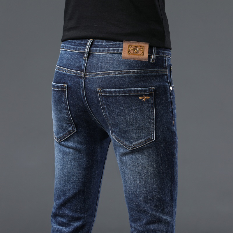 가을과 겨울 하이 엔드 라이트 럭셔리 청바지 남성용 유럽 역 트렌디 브랜드 스트레치 슬림 핏 스키니 바지 남성용 캐주얼 바지스토어 가기