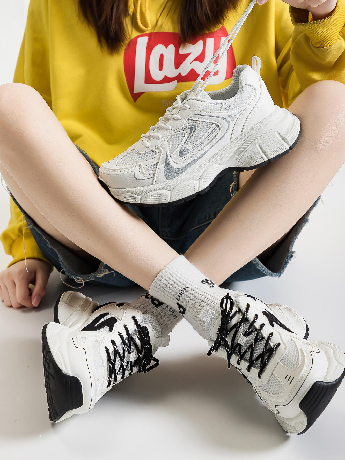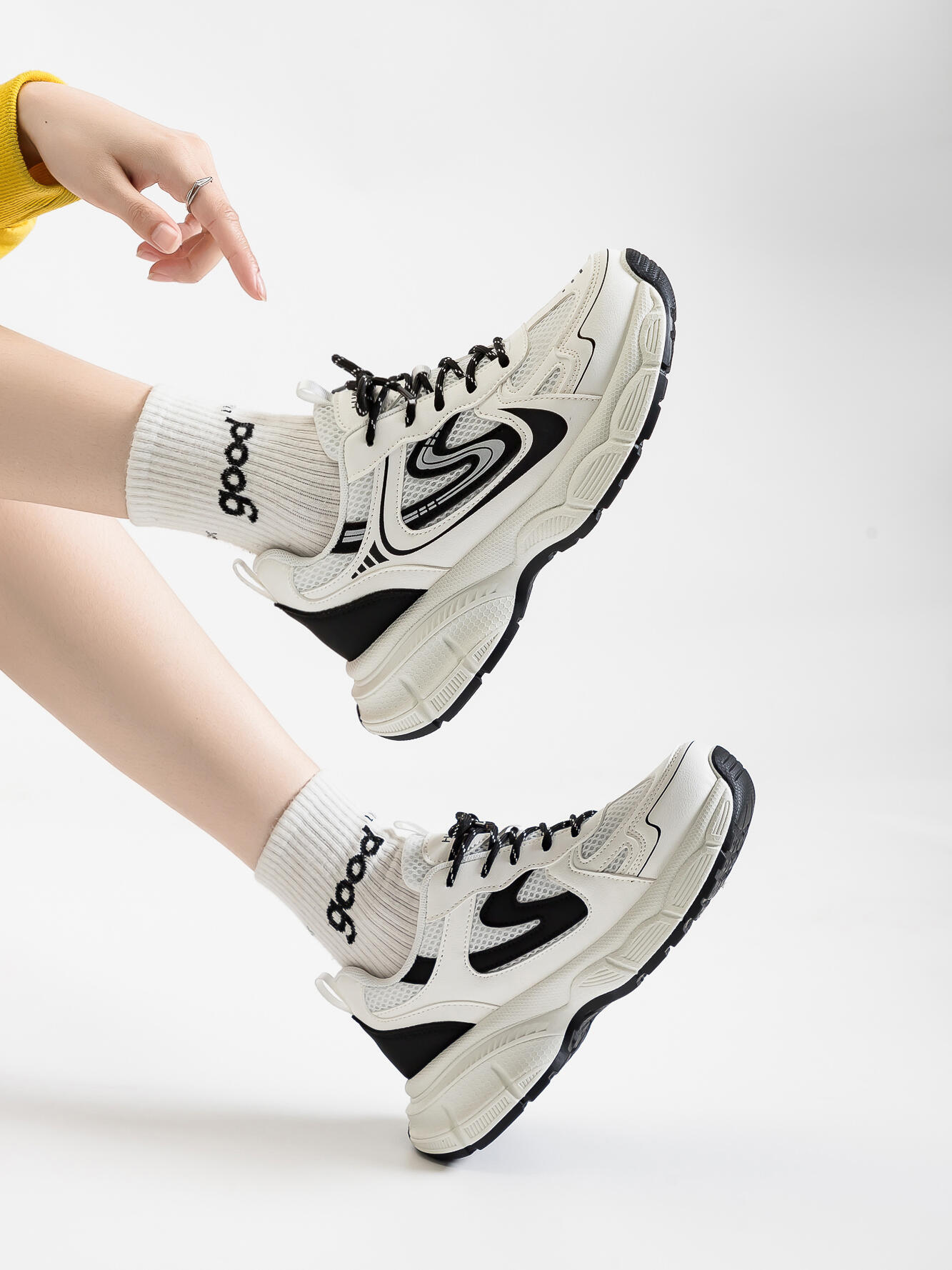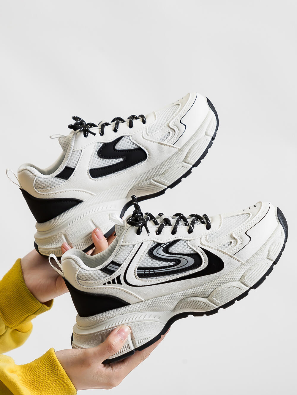 검은 토레 신발 여성의 2024 새로운 봄과 가을 높이 증가 두꺼운 밑창 런닝 신발 올매치 경량 캐주얼 운동화스토어 가기