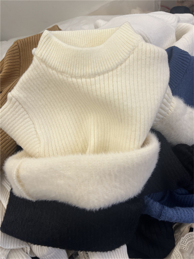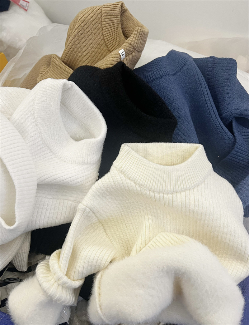 소년의 원피스 캐시미어 스웨터 어린이 하프 터틀넥 스웨터 걸스 화이트 기모 겨울을위한 양털베이스 옷스토어 가기