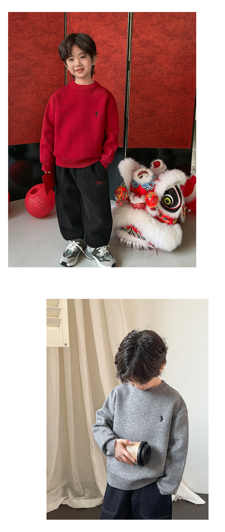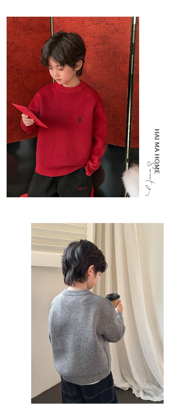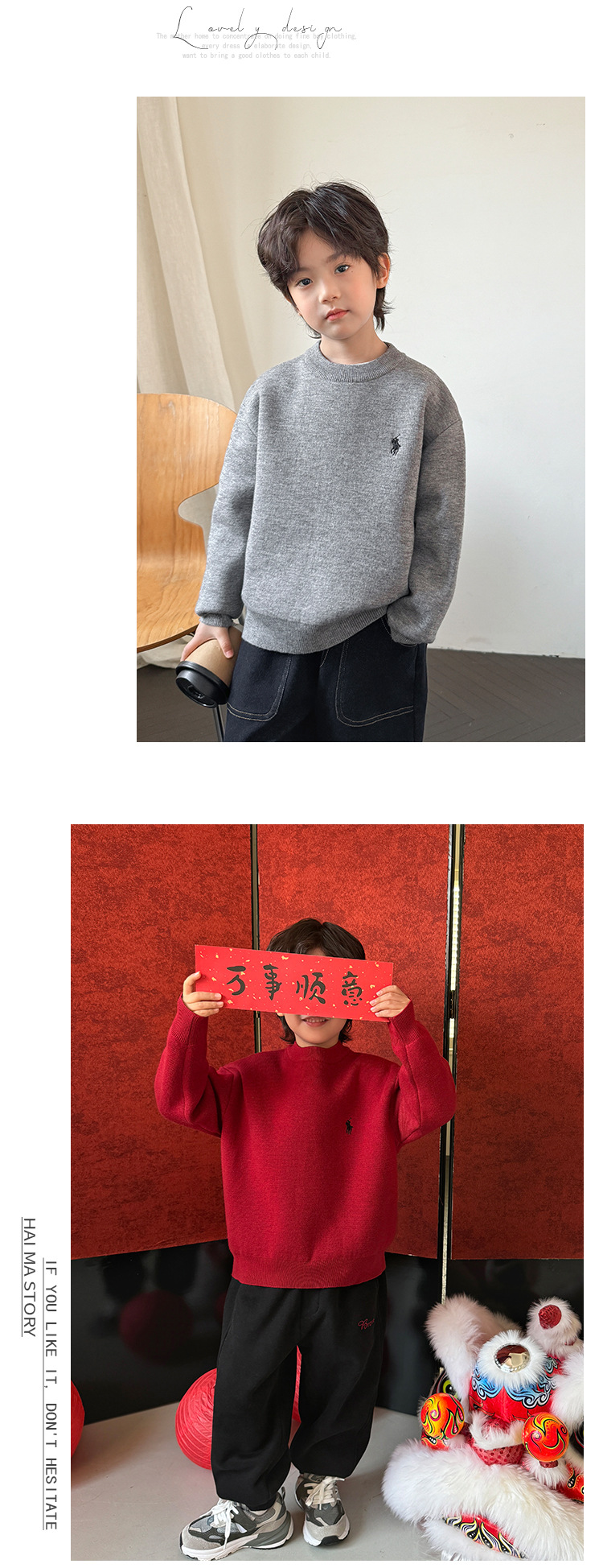 남아용 새해 니트 스웨터 2025 해마가족 아동 겨울옷 라운드넥 한국 스타일 아동복스토어 가기