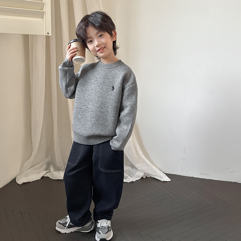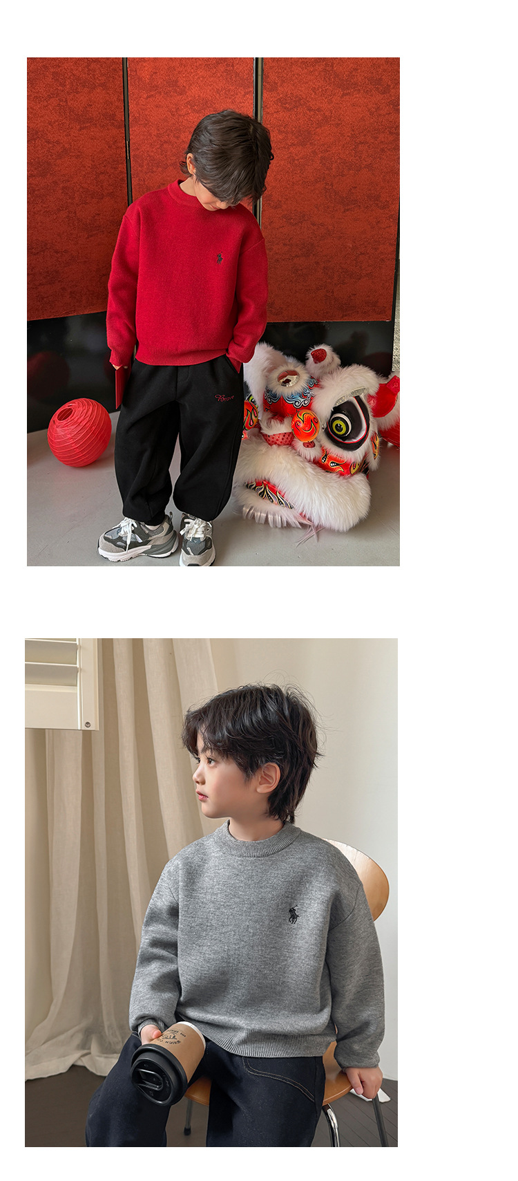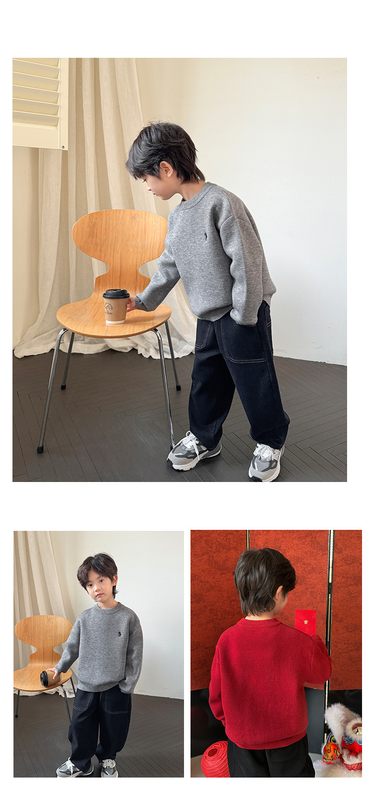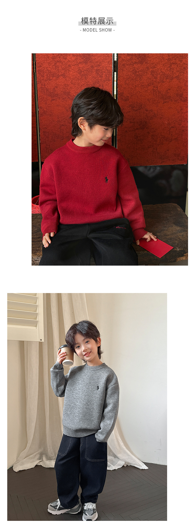 남아용 새해 니트 스웨터 2025 해마가족 아동 겨울옷 라운드넥 한국 스타일 아동복스토어 가기