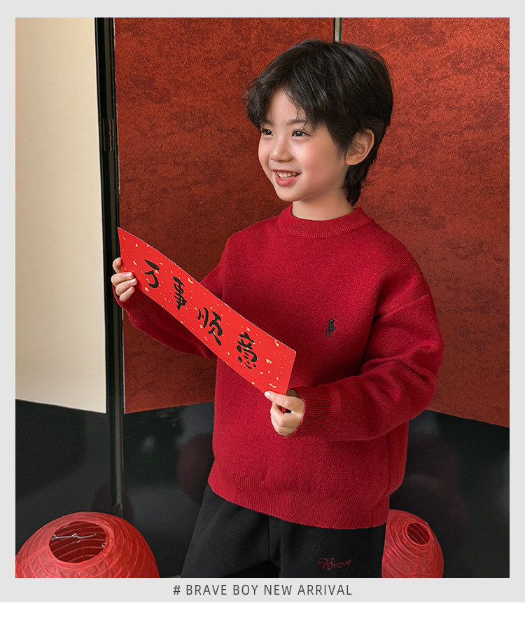 남아용 새해 니트 스웨터 2025 해마가족 아동 겨울옷 라운드넥 한국 스타일 아동복