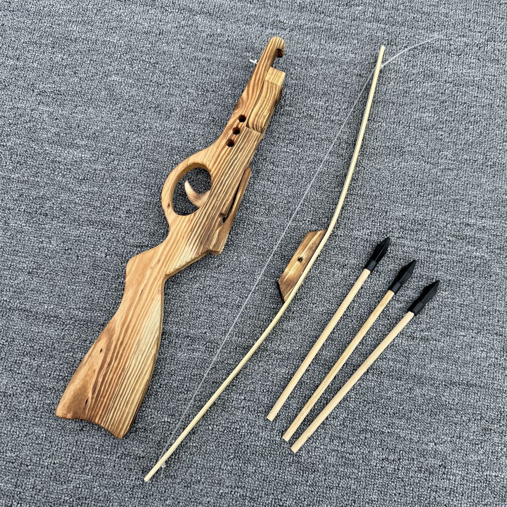 대나무 나무 석궁 어린이 장난감 권총 석궁 석궁 야외 사격 활과 화살은 치명적이지 않은 경치 장난감스토어 가기