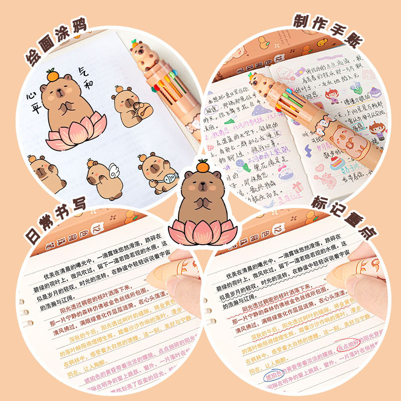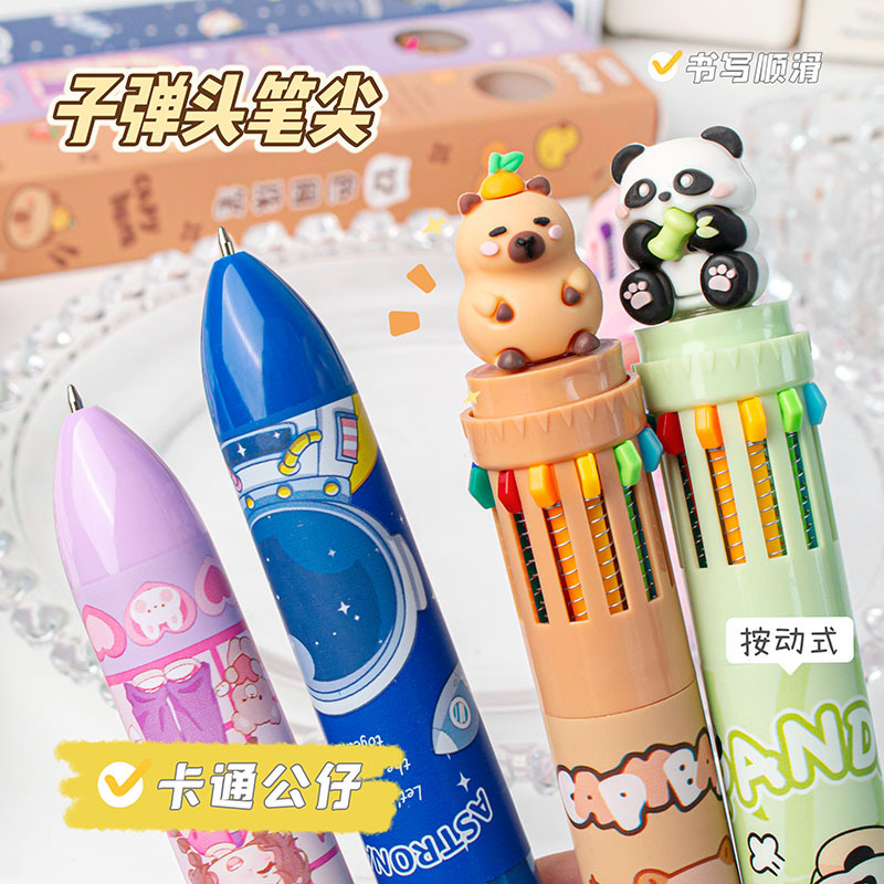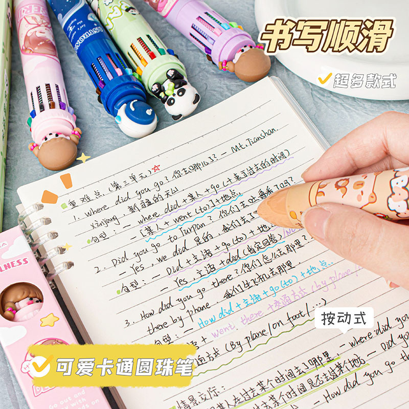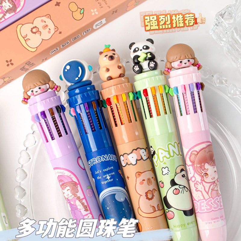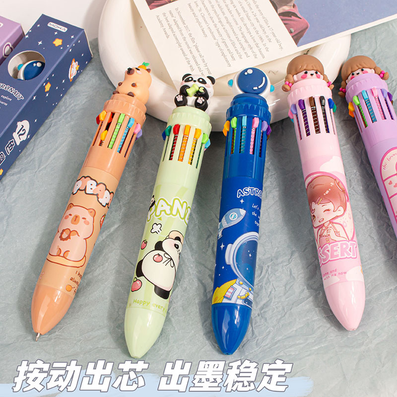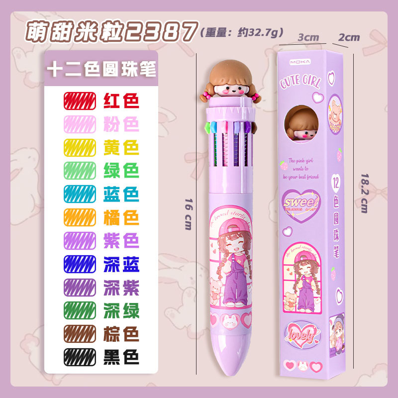만화 실리콘 헤드 12 색 볼펜 귀여운 멀티 컬러 1 대 1 펜 노트 만들기 프레스 유형 컬러 마커 학생용