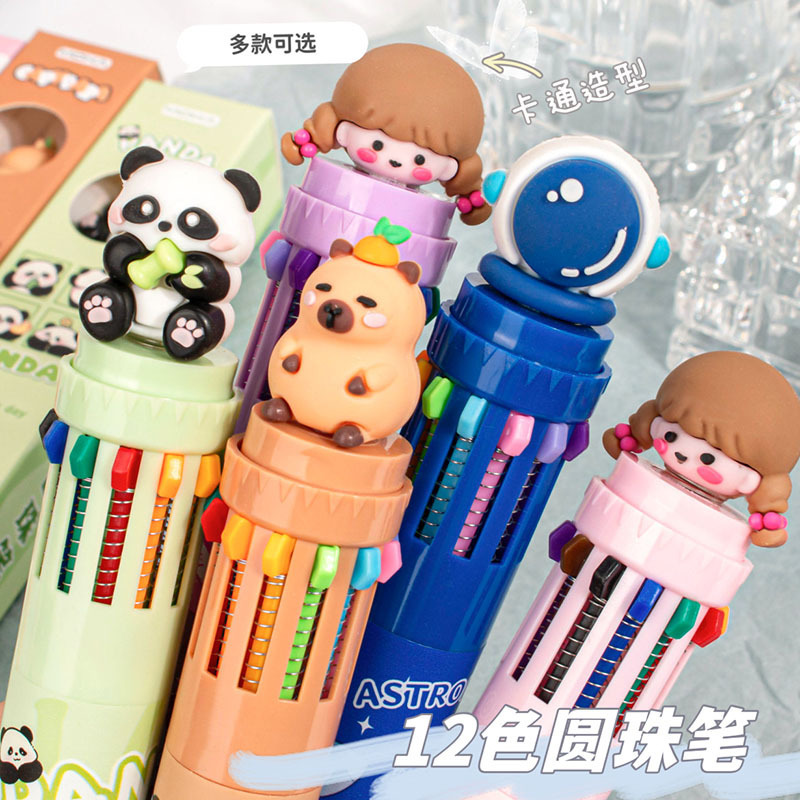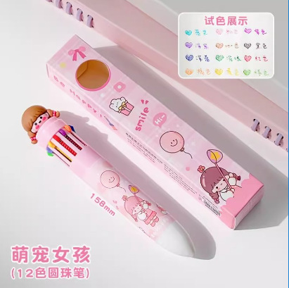 만화 실리콘 헤드 12 색 볼펜 귀여운 멀티 컬러 1 대 1 펜 노트 만들기 프레스 유형 컬러 마커 학생용스토어 가기