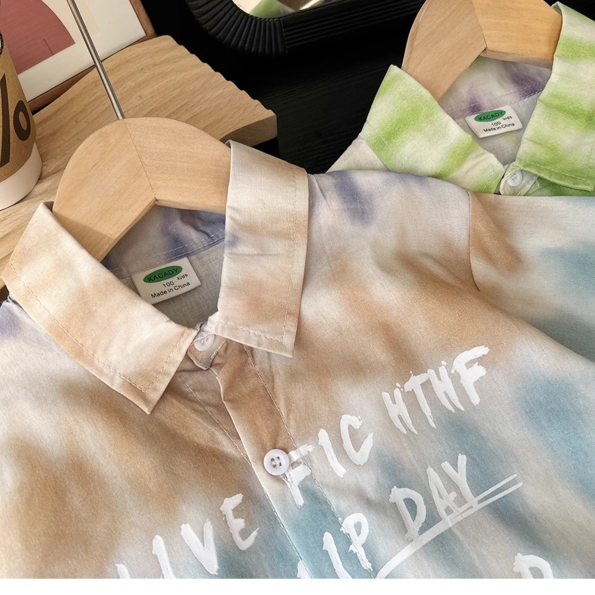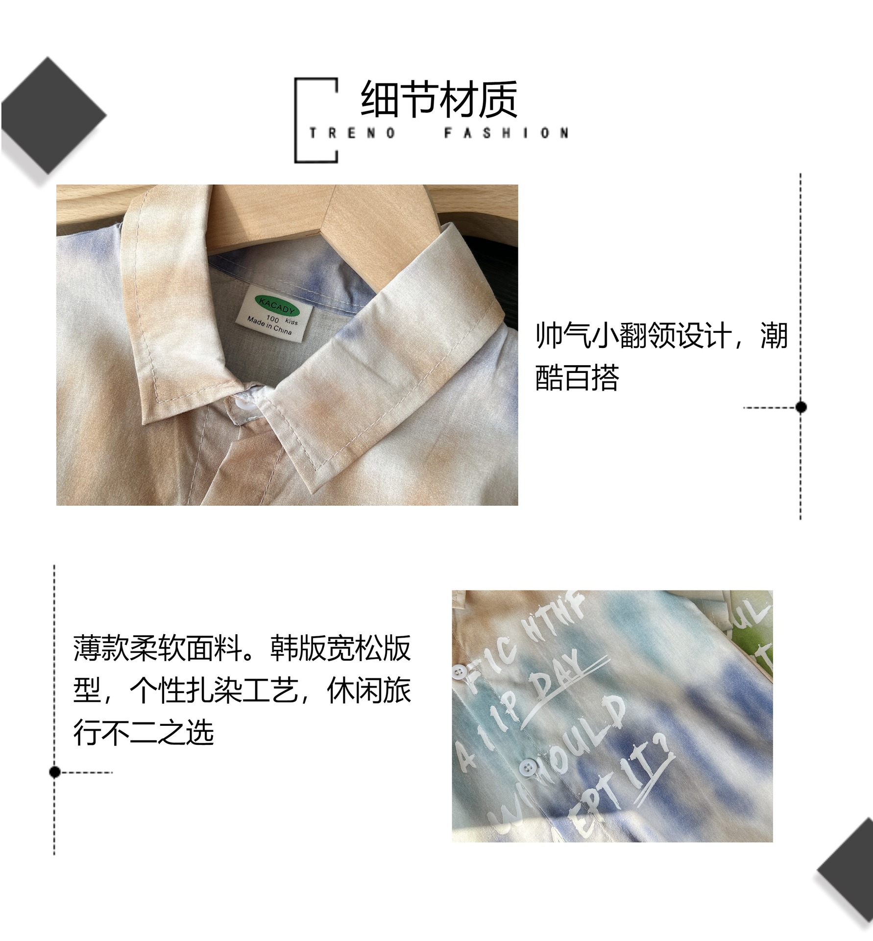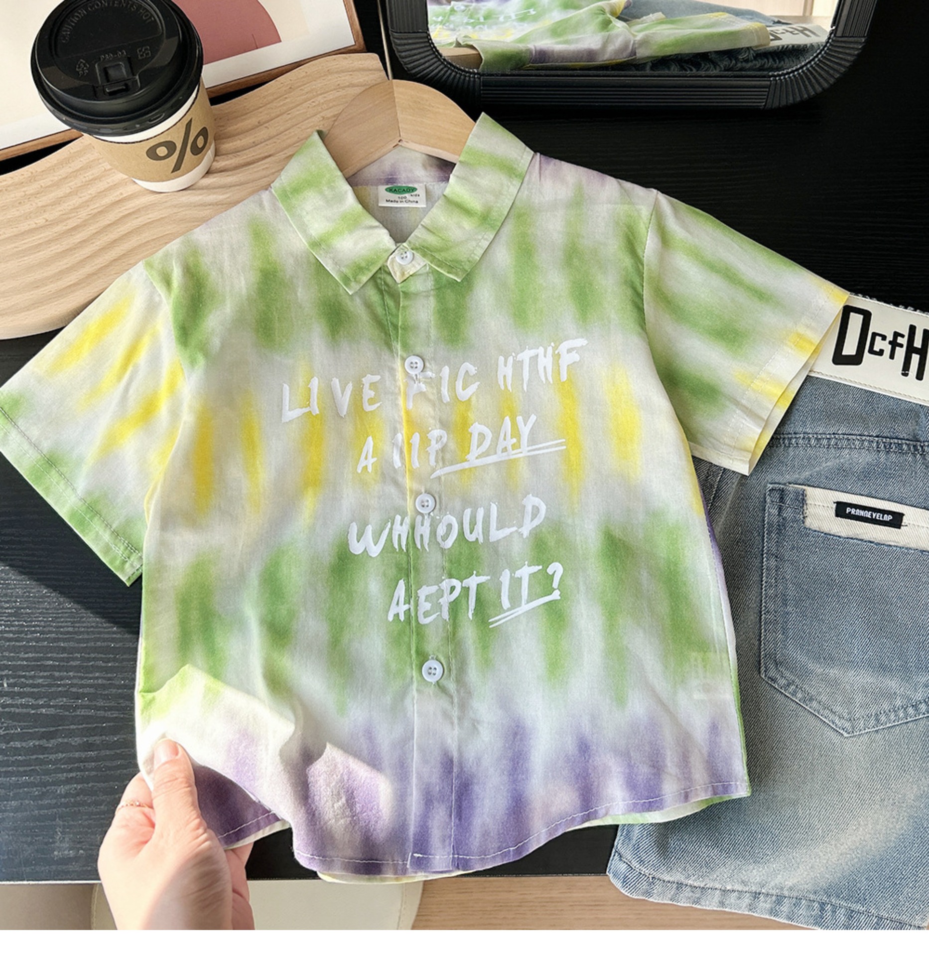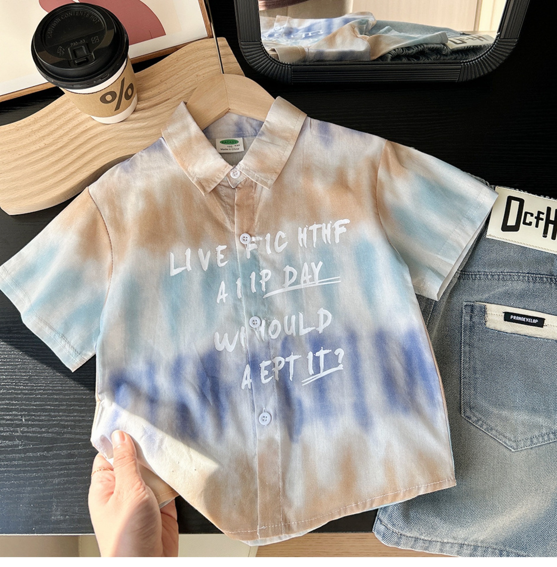 어린이 한국식 느슨한 반팔 셔츠 2025 여름 서양식 얇은 쿨 넥타이 염색 비치 탑스토어 가기