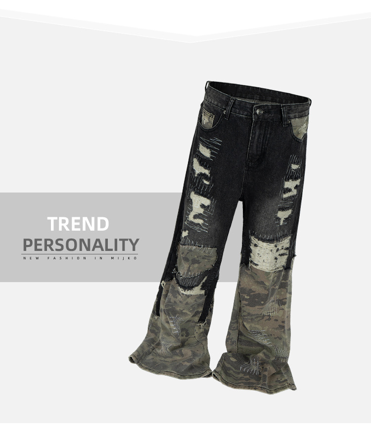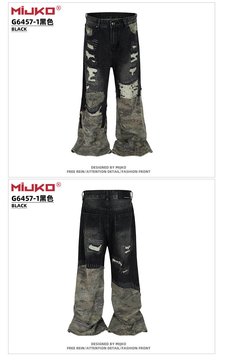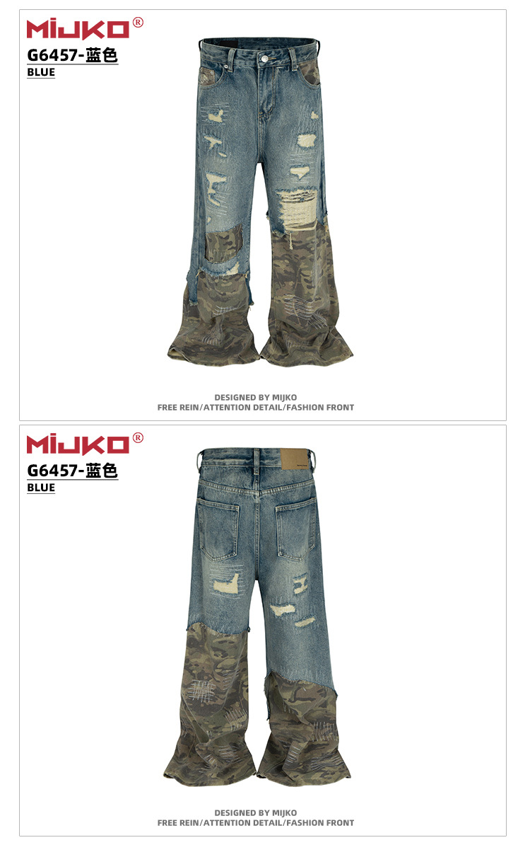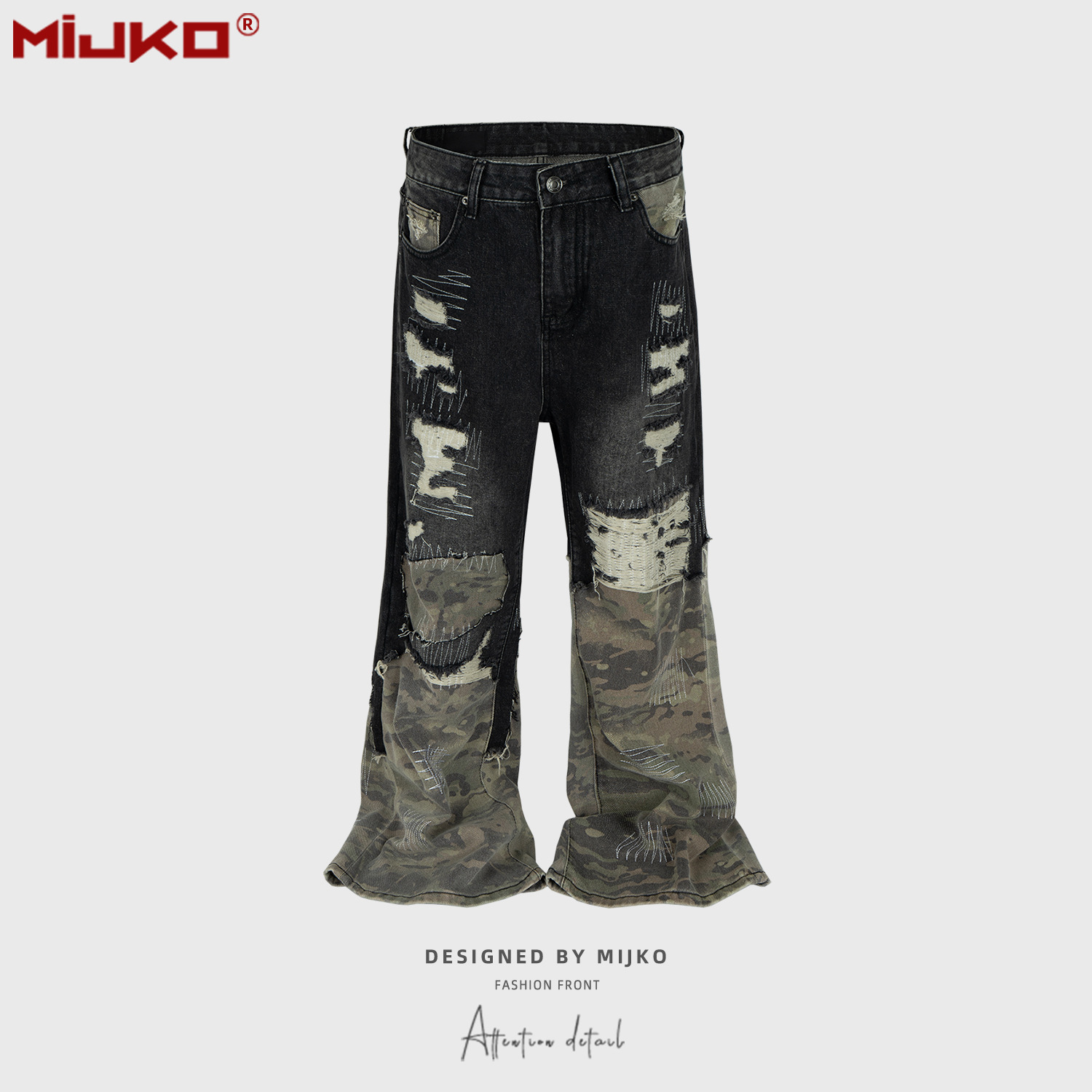 MIJKO 남성복 여성용 미국 위장 천 바느질 올드 홀 디자인 남성과 여성의 청바지 마이크로 와이드 바지스토어 가기