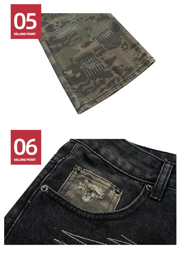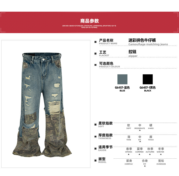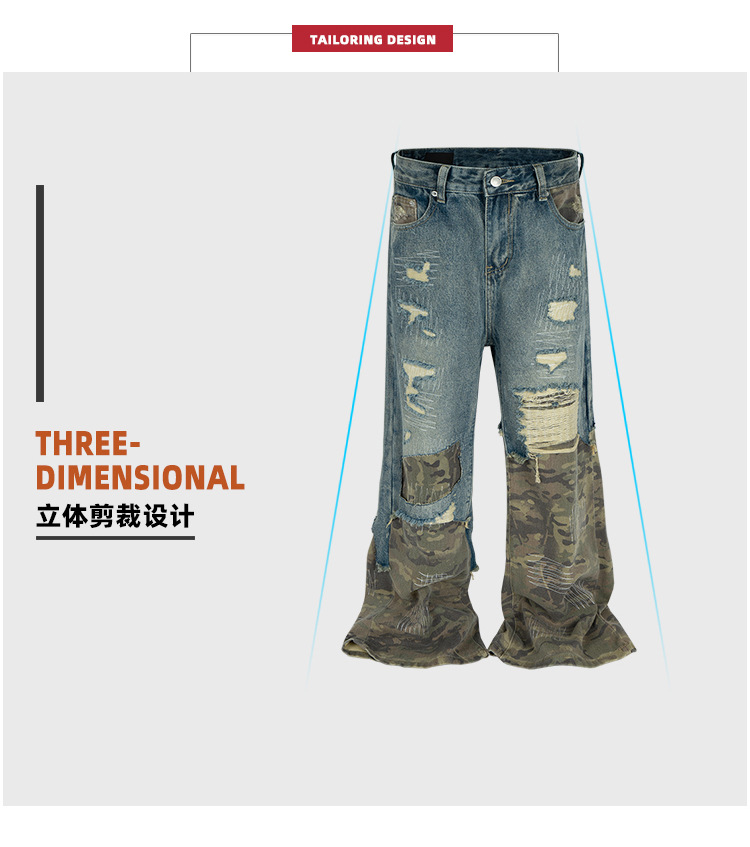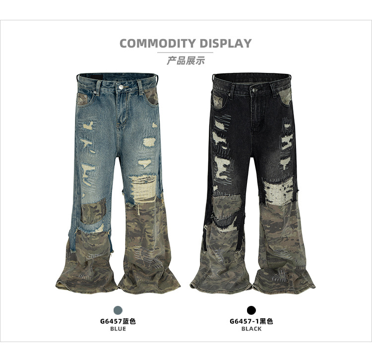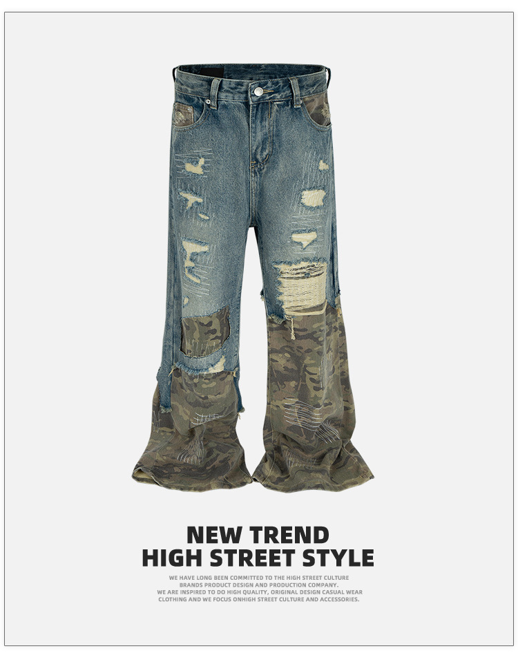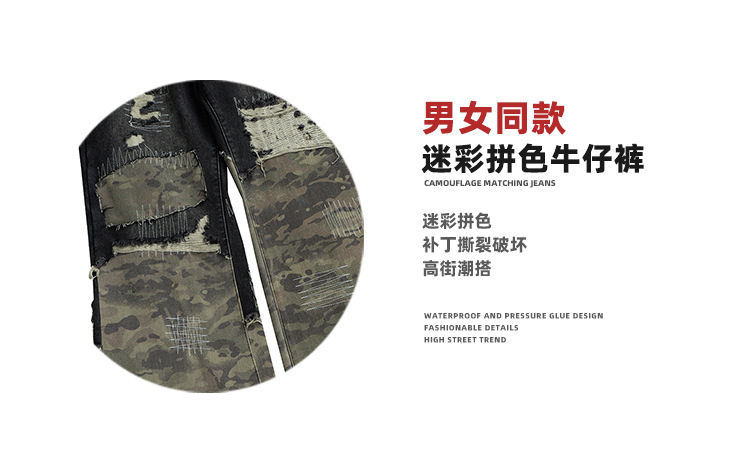 MIJKO 남성복 여성용 미국 위장 천 바느질 올드 홀 디자인 남성과 여성의 청바지 마이크로 와이드 바지스토어 가기