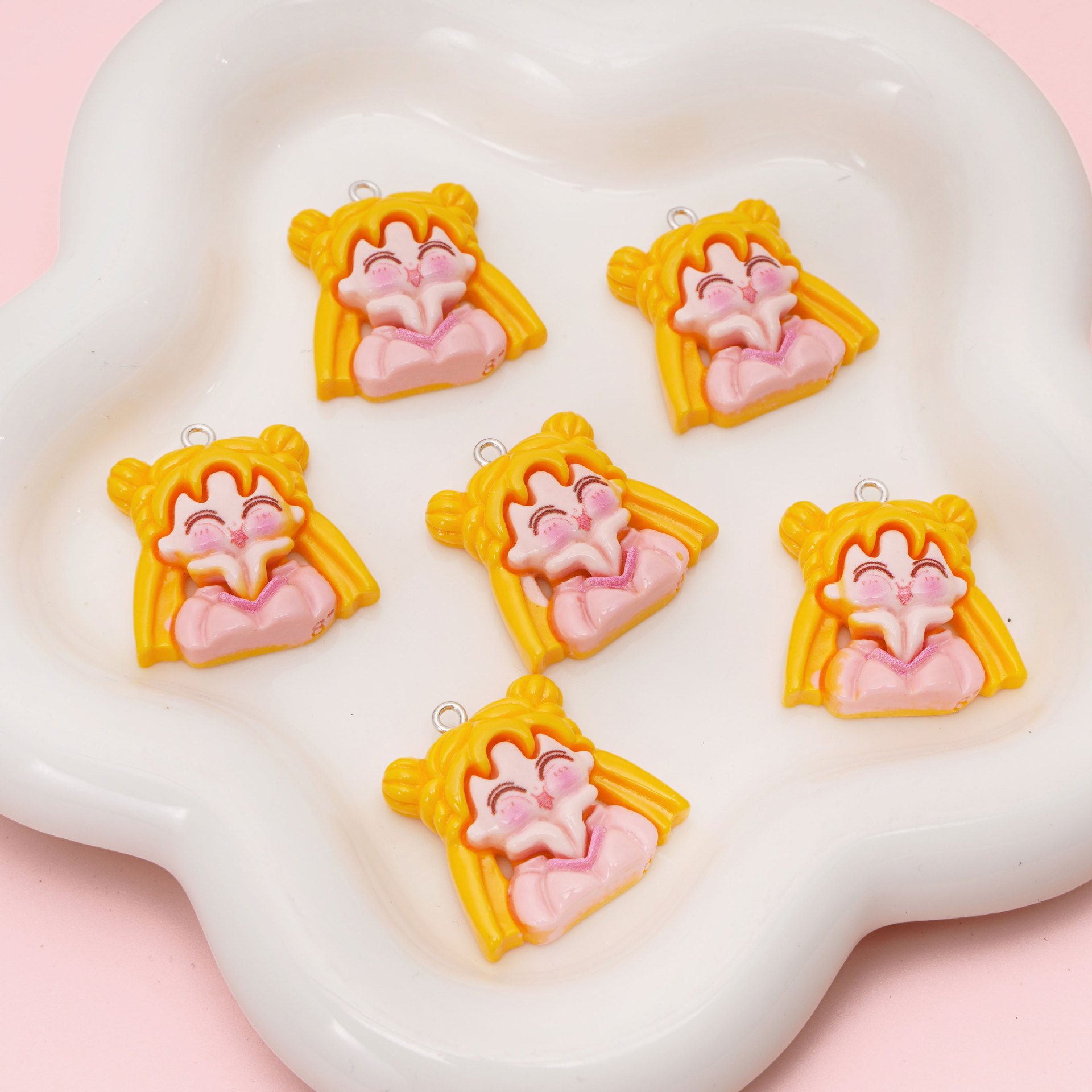 수지 아름다움 소녀 전사 펜던트 활 펜던트 수제 DIY 액세서리 키 체인 목걸이 팔찌 소재 가방