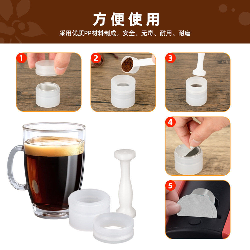 네슬레 소형 캡슐과 호환되는 프레스 파우더 액세서리 도구가 포함된 PP 소재 커피 파우더 디스펜서스토어 가기