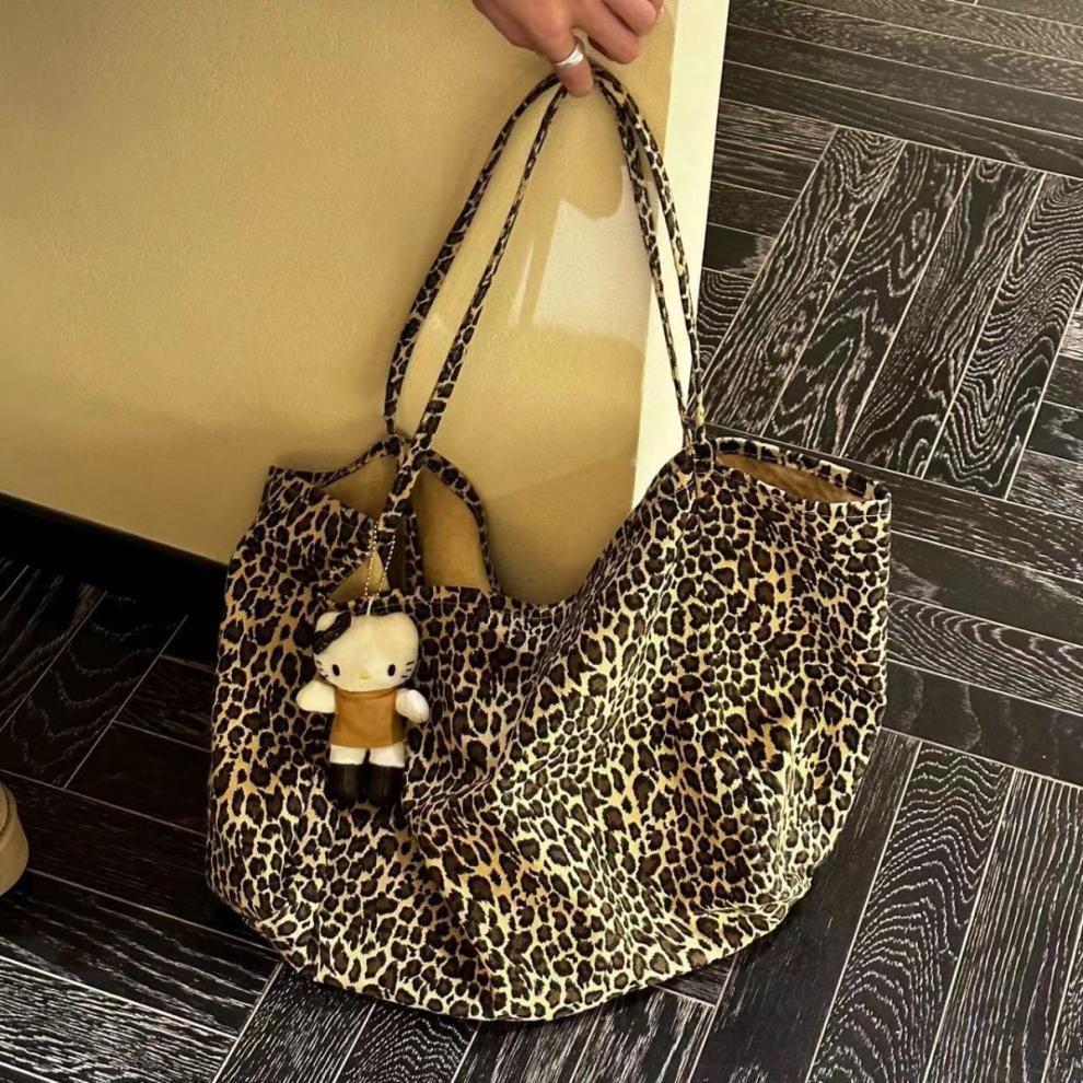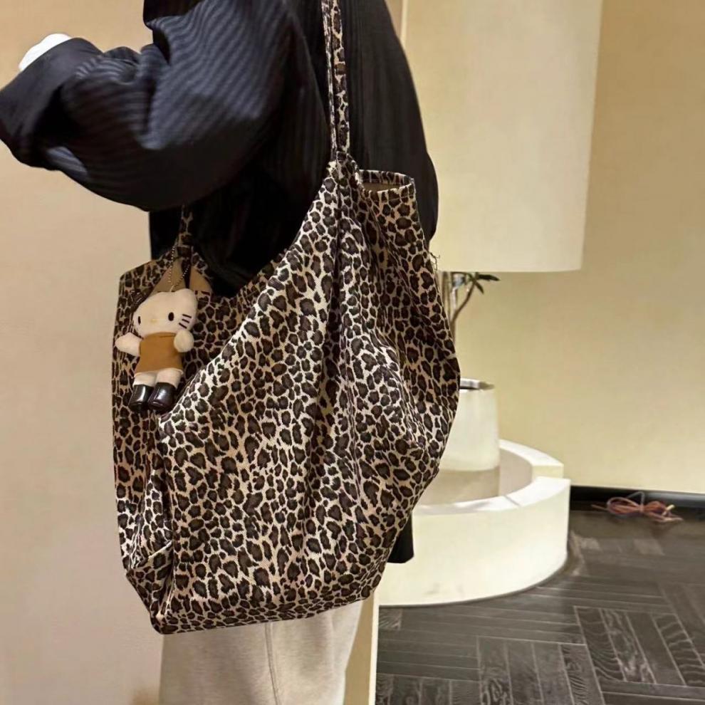 2024 새로운 대용량 캐주얼 레오파드 무늬 대형 어깨 가방 인스 타 그램 편안한 올 매치 일본과 한국 실용적인 캔버스 가방 DY스토어 가기