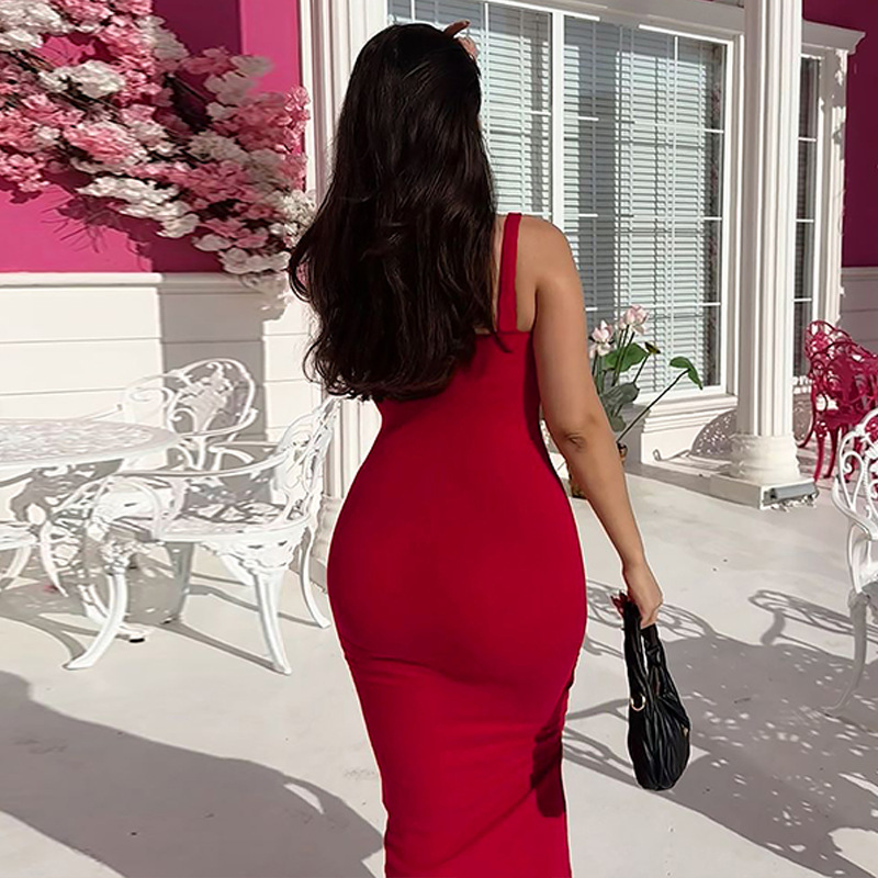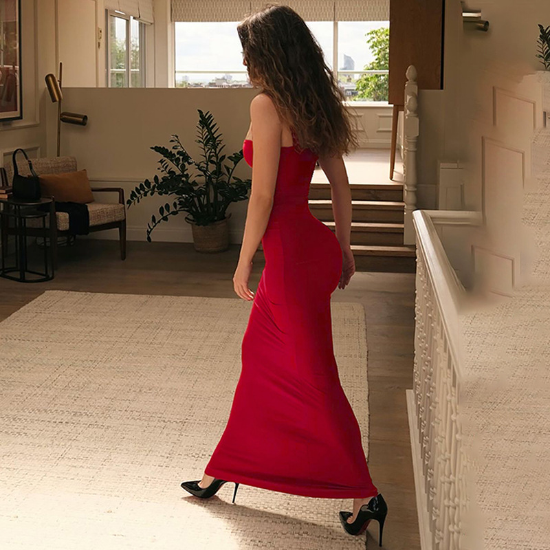 유럽과 미국 국경 2025 봄 여성의 새로운 고급 기질 원피스 프랑스 칼라 슬림 스트랩 원피스