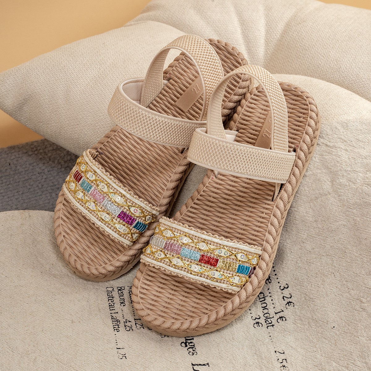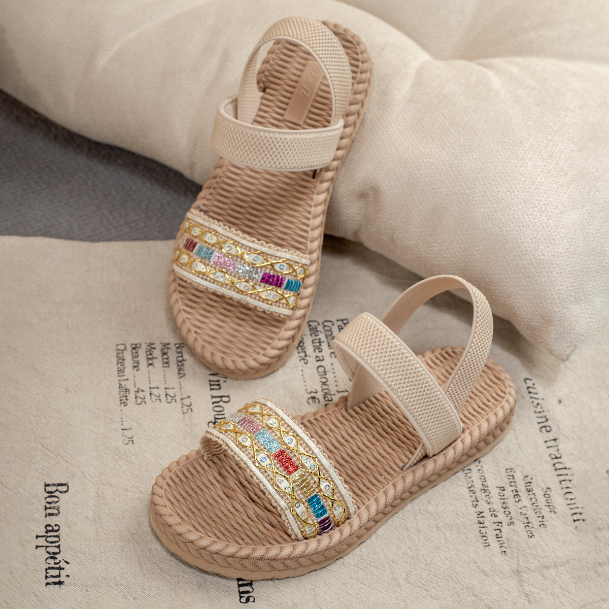 국경 간 신제품 리넨 걸스 캐주얼 야외 편안한 엘라스밴드 디자인 경량 유행 한 단어 샌들 홈스토어 가기