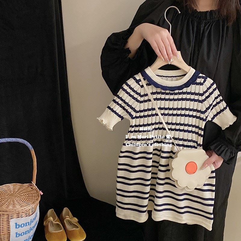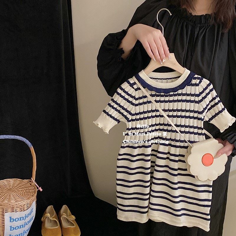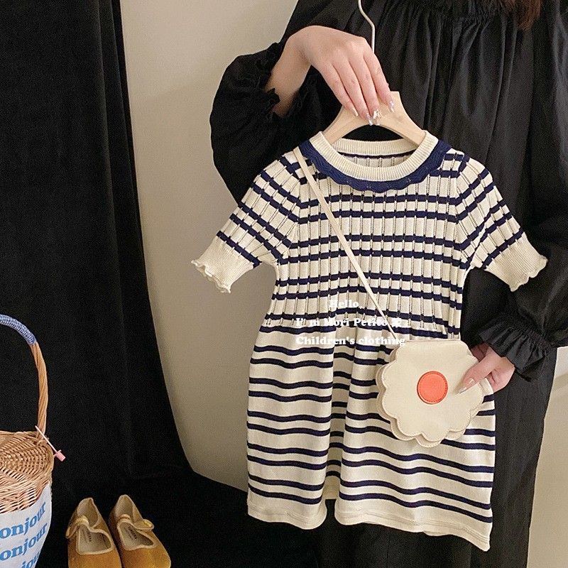소녀의 니트 줄무늬 원피스 짧은 소매 여름 아기 소녀의 치마 스트레치 캐주얼 스커트 한국식 0158A088