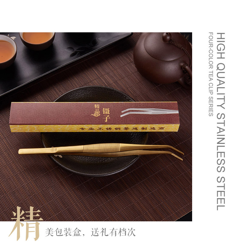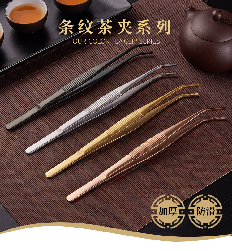 스테인레스 스틸 스트라이프 4 색 티 클립 차 미끄럼 방지 쿵푸 차 세트 액세서리 티 컵 클립 티 핀셋 제조 업체 도매