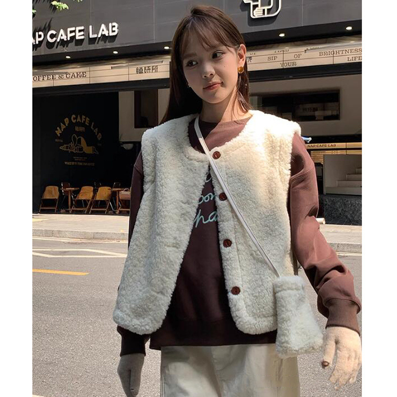 양고기 양모 조끼 여성의 짧은 가을과 겨울 새로운 소프트 왁스 패션 외부 버튼 디자인 센스 민소매 최고 트렌디스토어 가기