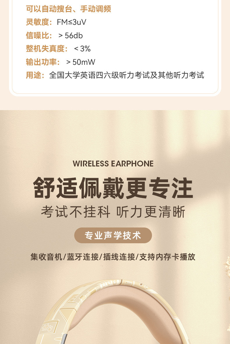CET-4 및 CET-6 듣기 헤드셋 헤드셋 블루투스 FM FM AB 대학 시험 공장 아울렛 특수 헤드셋스토어 가기