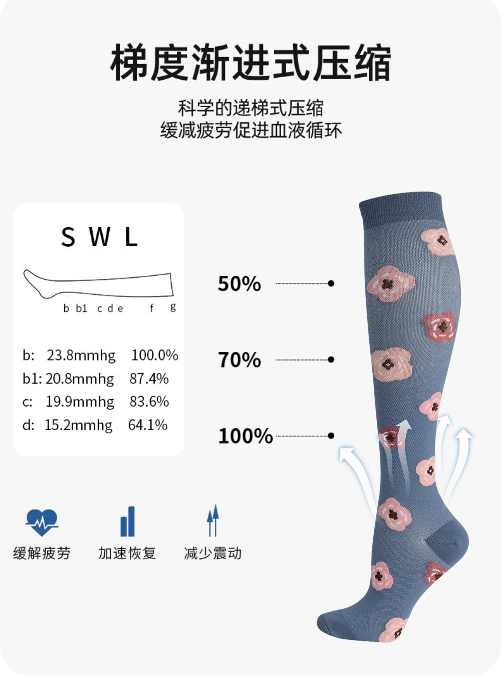 여성용 스포츠 압박 양말, 줄넘기, 러닝, 종아리 양말, 사이클링, 탄력 긴 양말, 압박 양말 도매, 통기성, 속건성