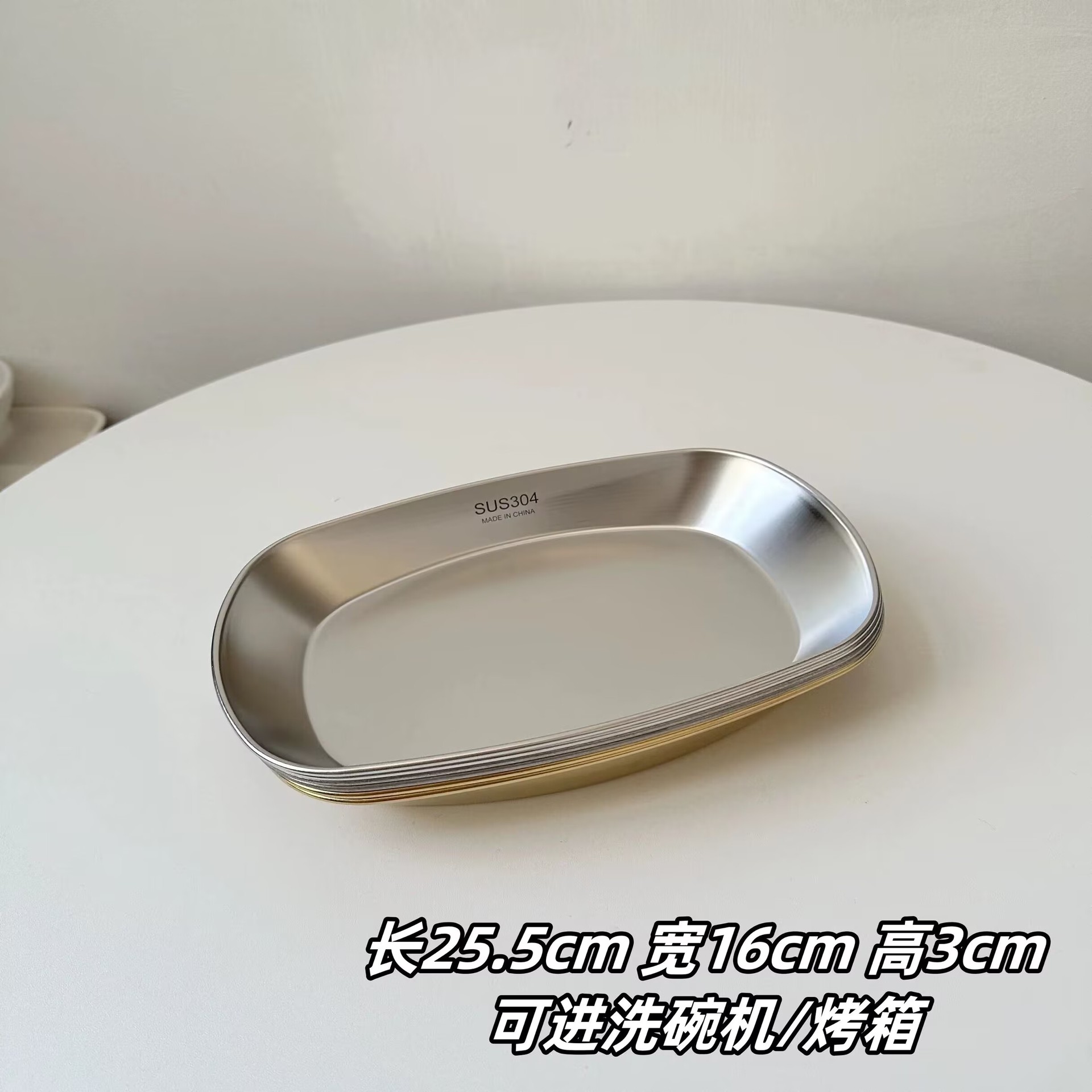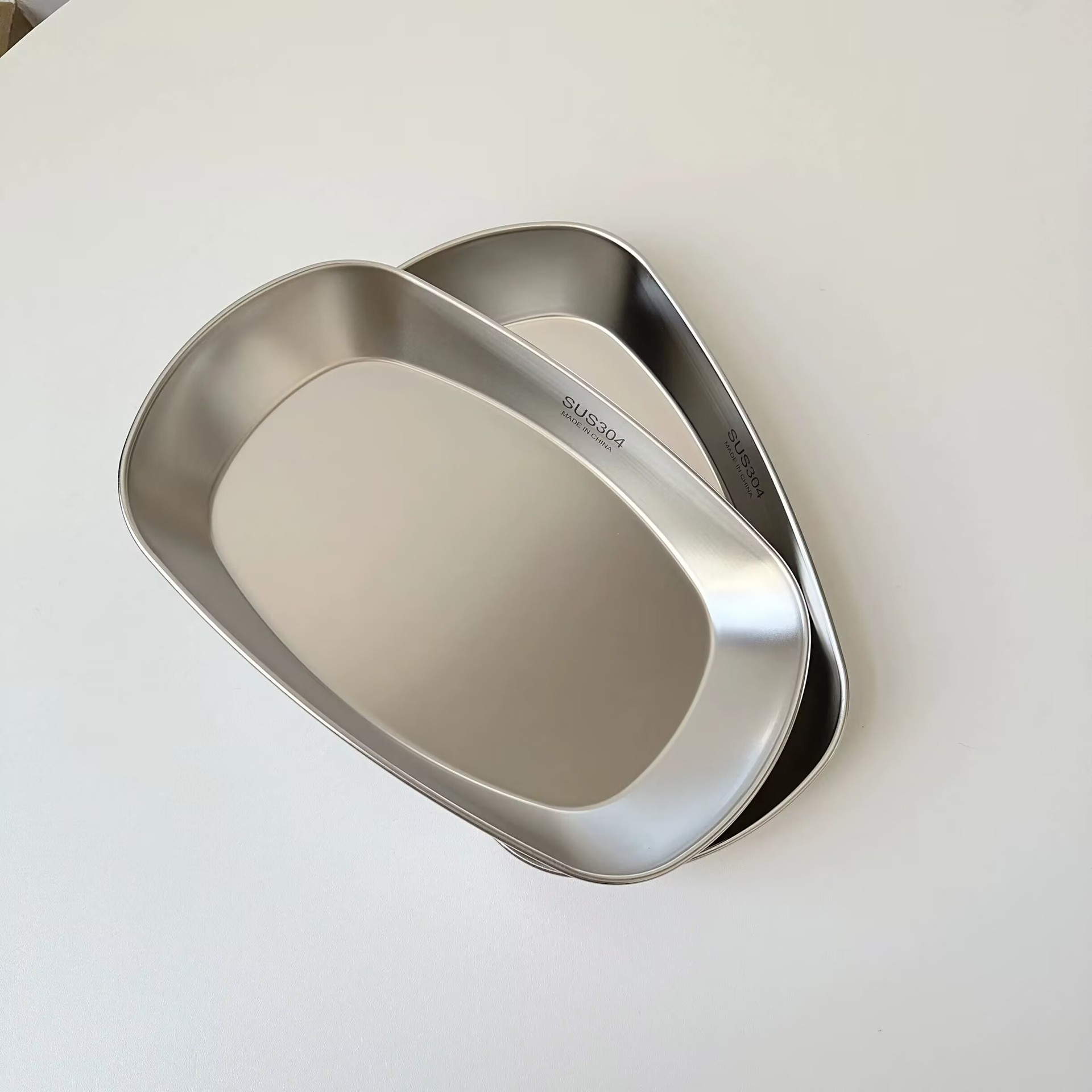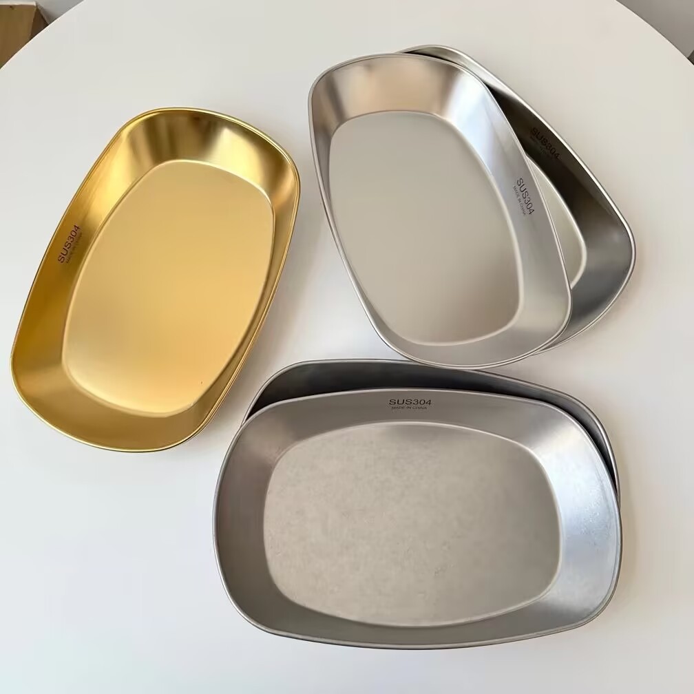 304 스테인레스 스틸 캠핑 플레이트 바베큐 골판지 디저트 트레이 평평한 바닥 플레이트 직사각형 작은 플레이트