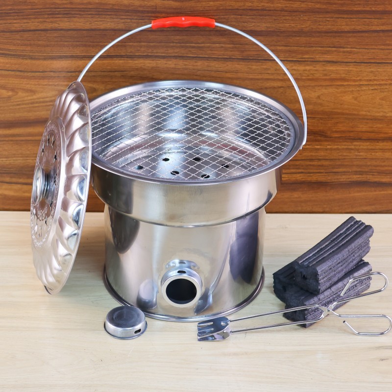 • 업그레이드되고 두꺼워지고 넓어진 스테인레스 스틸 숯불 난로 + 카본 클립 + 냄비 홀더